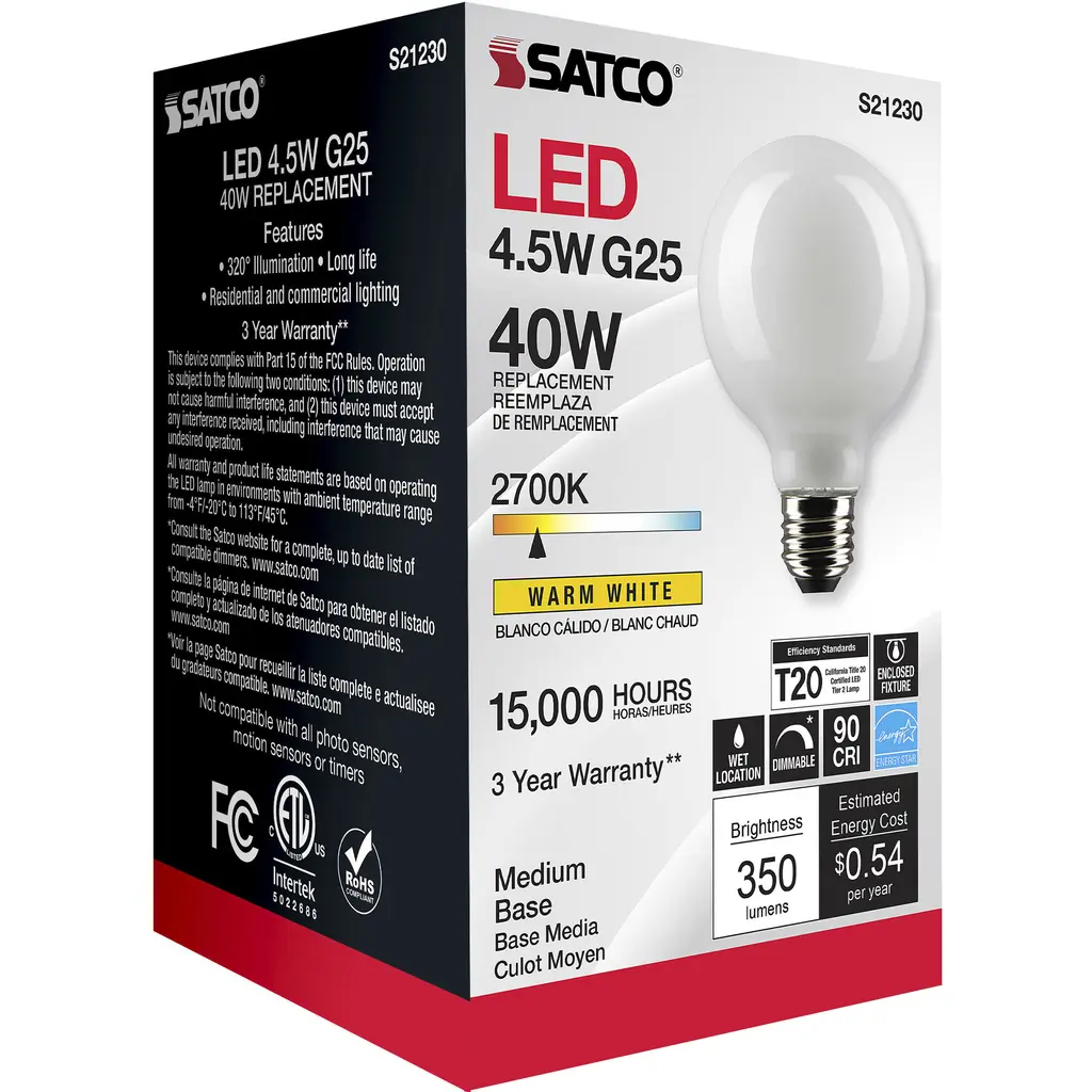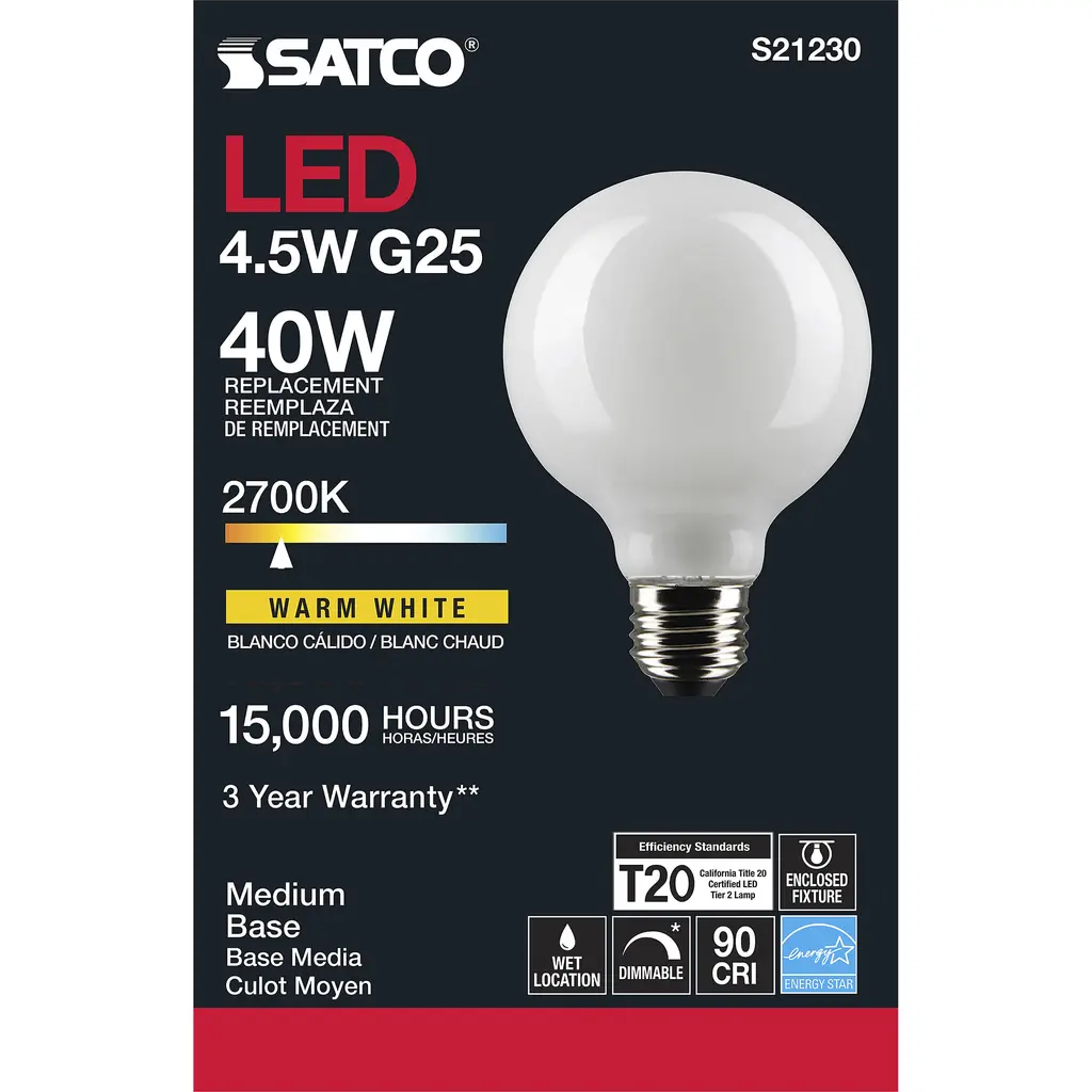 4.5 Watt G25 LED Lamp - White - Medium Base - 90 CRI - 2700K - 120 Volts