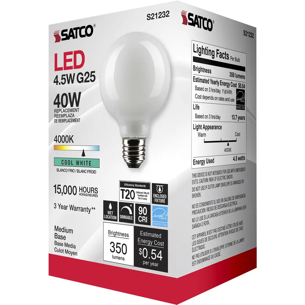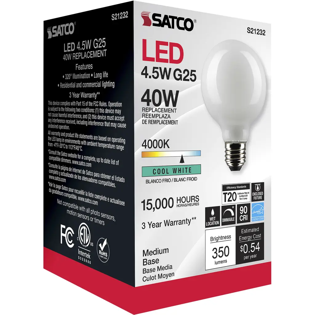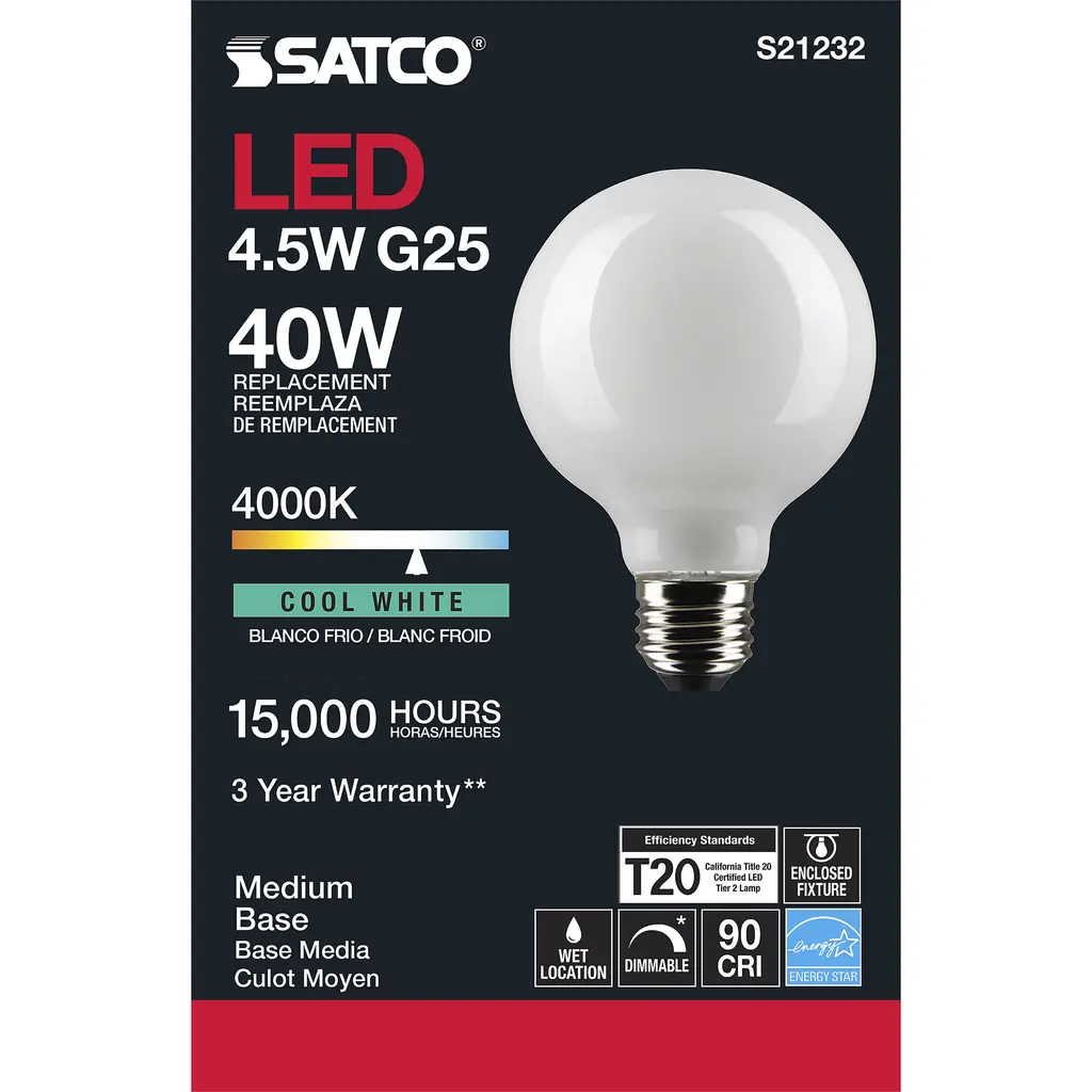 4.5 Watt G25 LED Lamp - White - Medium Base - 90 CRI - 4000K - 120 Volts