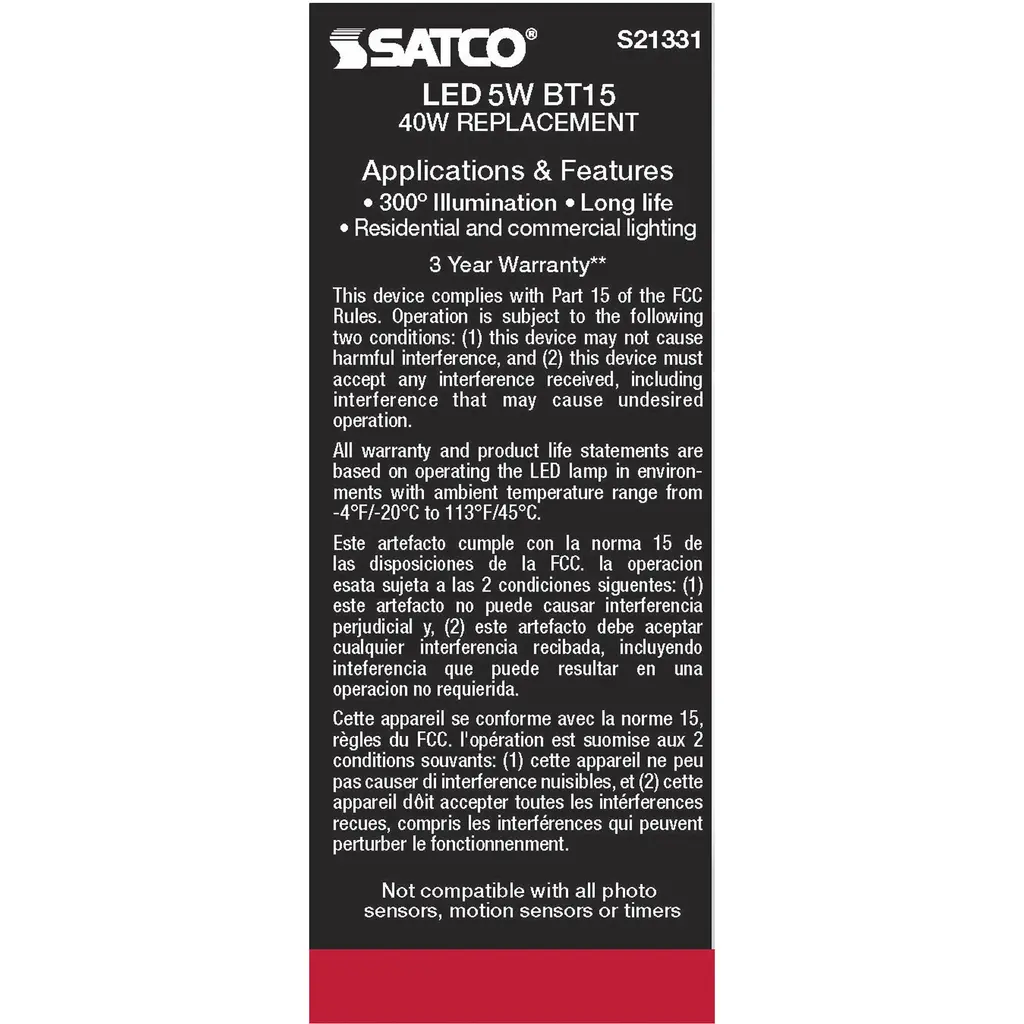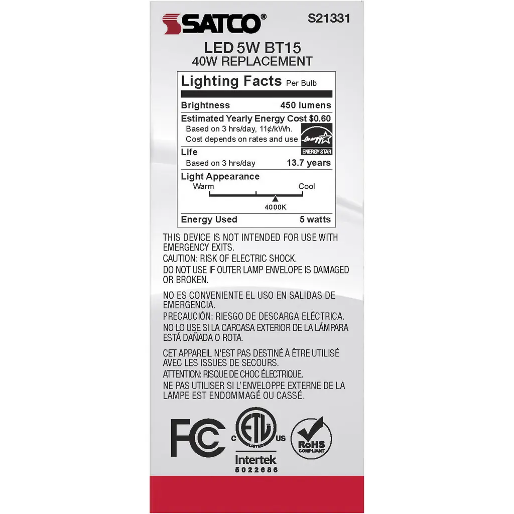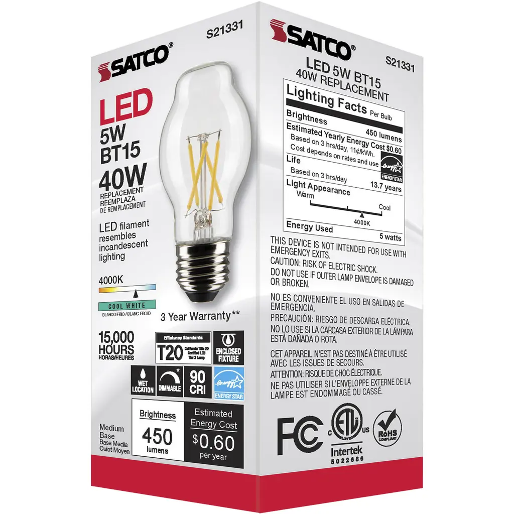 5 Watt BT15 LED Lamp - Clear - Medium Base - 90 CRI - 4000K - 120 Volts