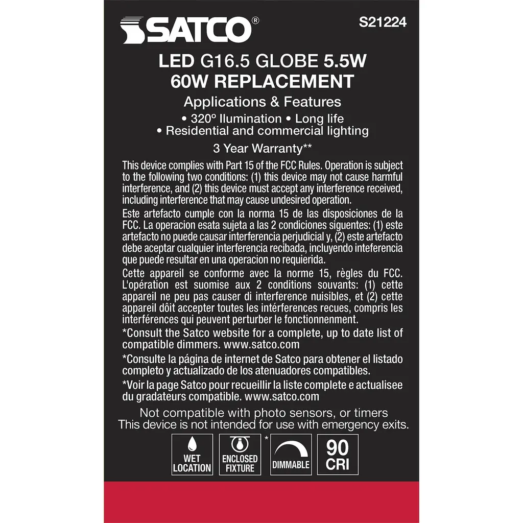 5.5 Watt G16.5 LED Lamp - White - Medium Base - 90 CRI - 3000K - 120 Volts