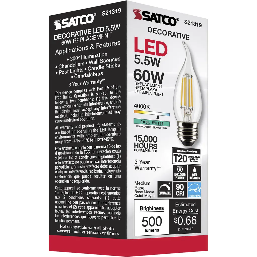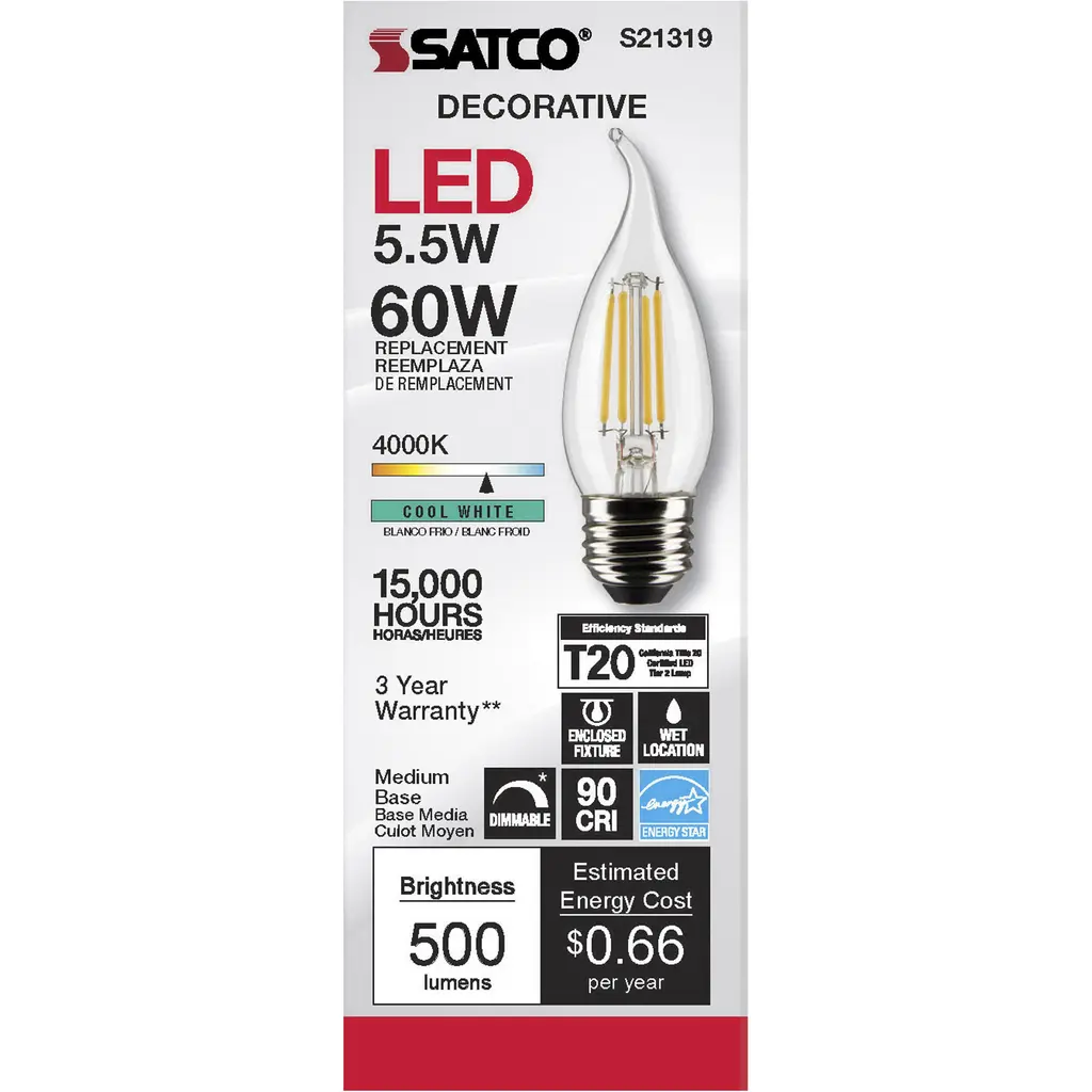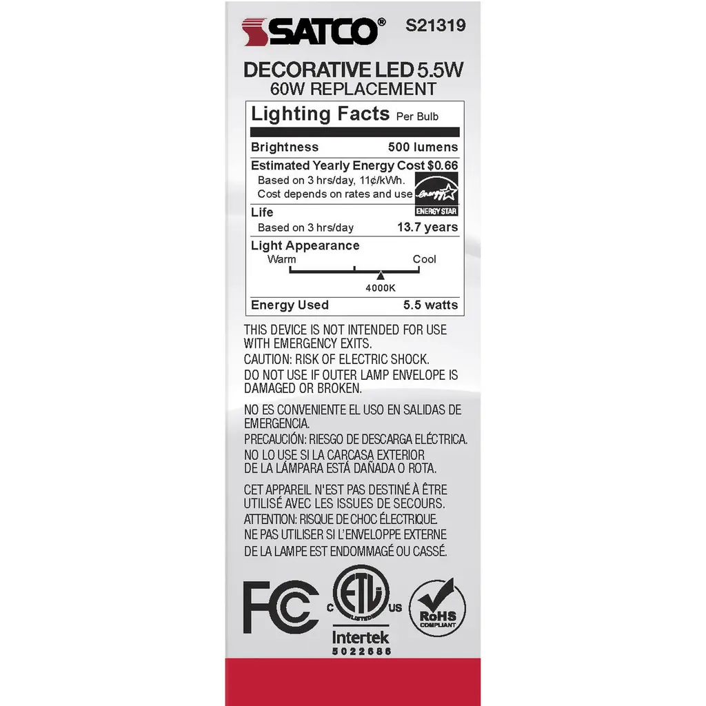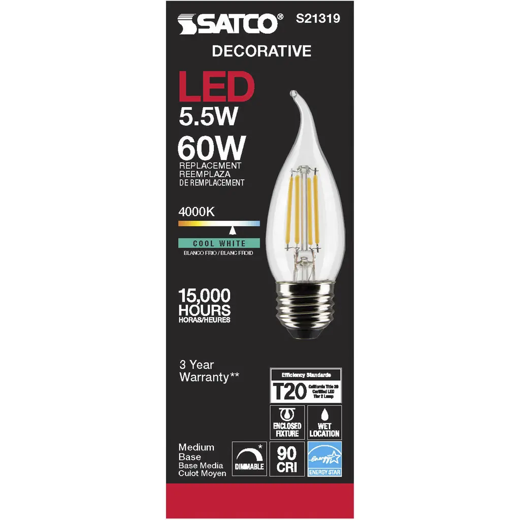 5.5 Watt CA11 LED Lamp - Clear - Medium Base - 90 CRI - 4000K - 120 Volts