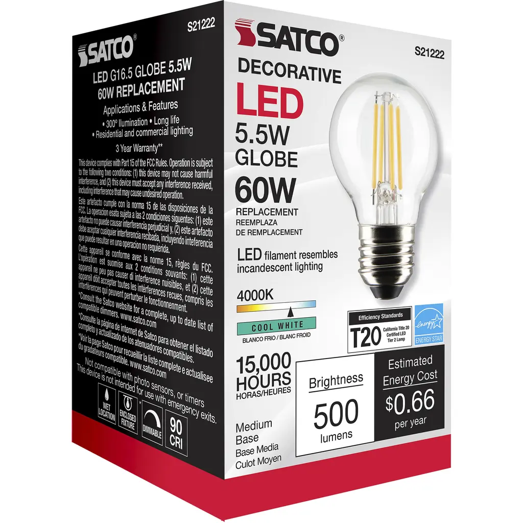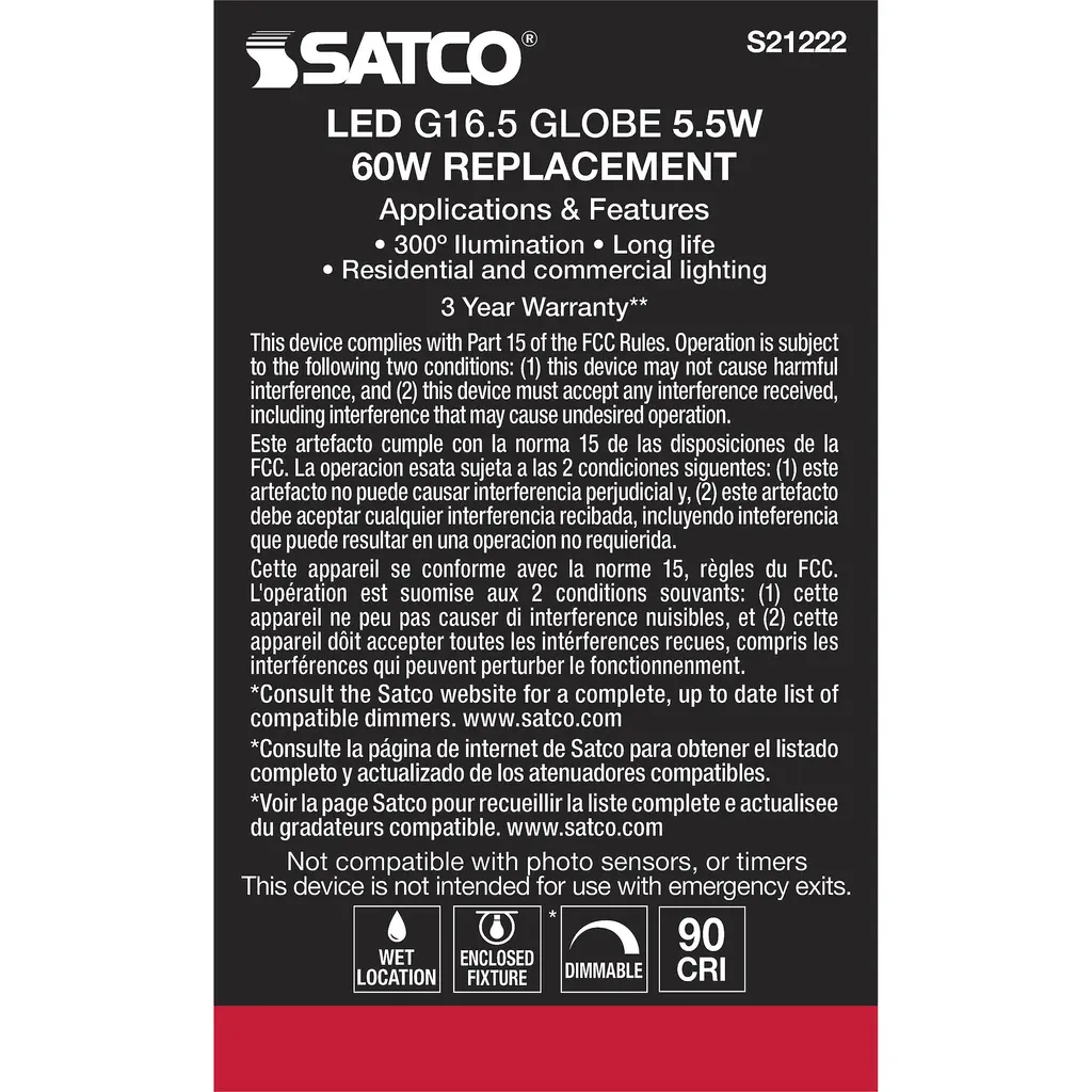 5.5 Watt G16.5 LED Lamp - Clear - Medium Base - 90 CRI - 4000K - 120 Volts