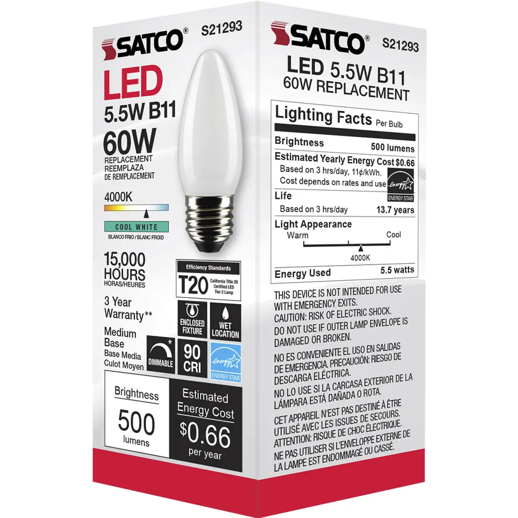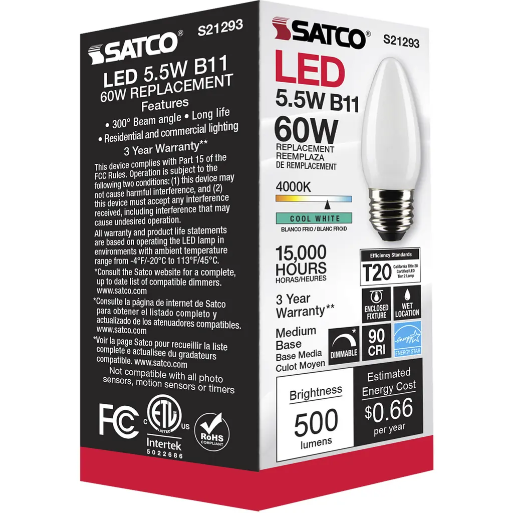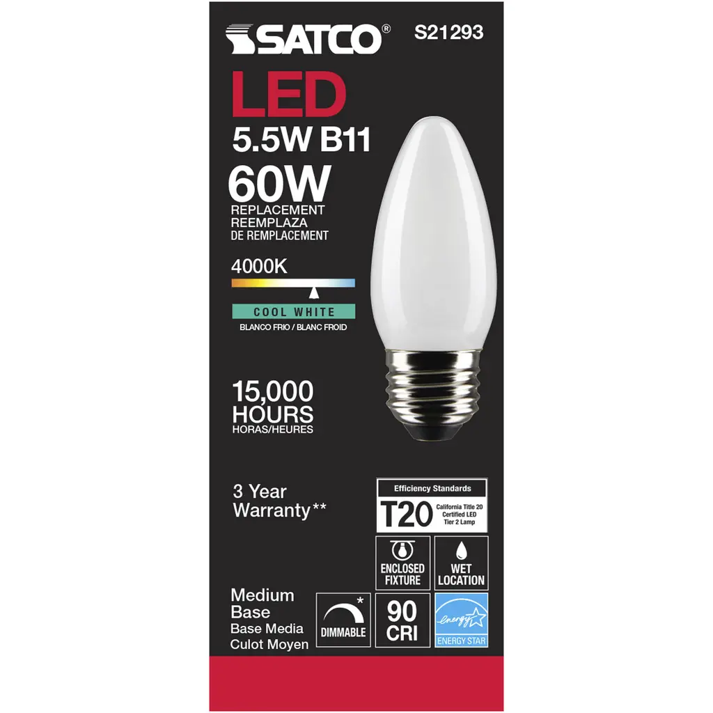 5.5 Watt B11 LED Lamp - Frost - Medium Base - 90 CRI - 4000K - 120 Volts