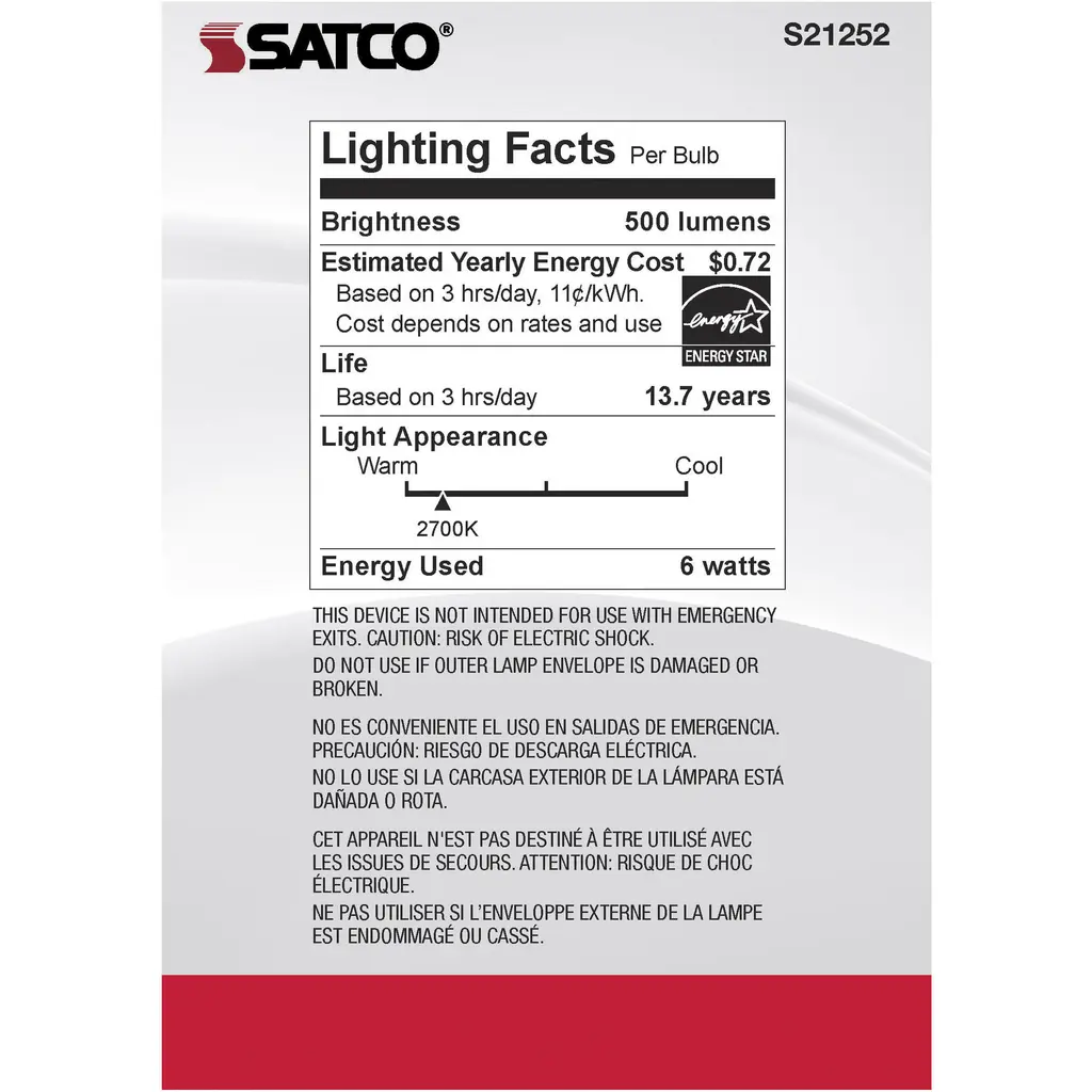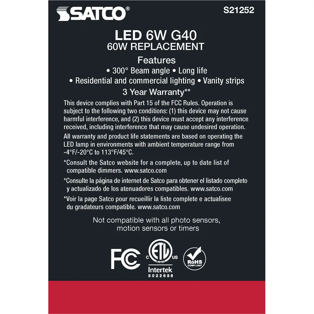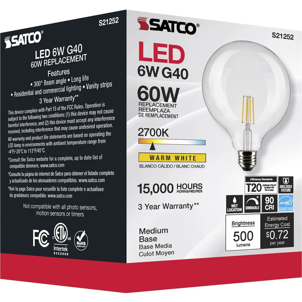 6 Watt G40 LED Lamp - Clear - Medium Base - 90 CRI - 2700K - 120 Volts