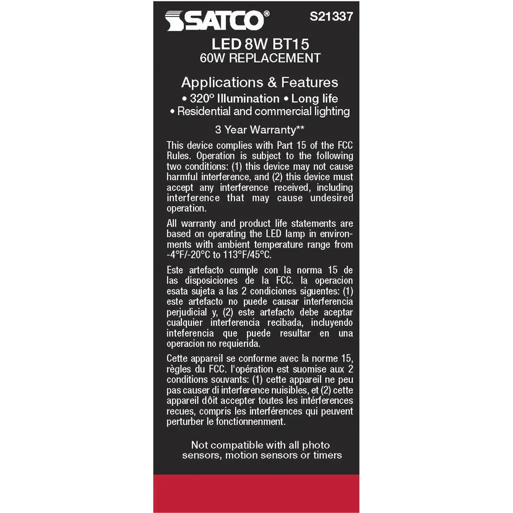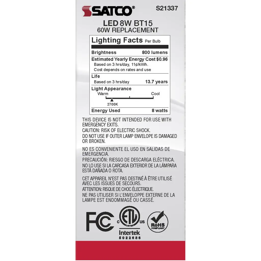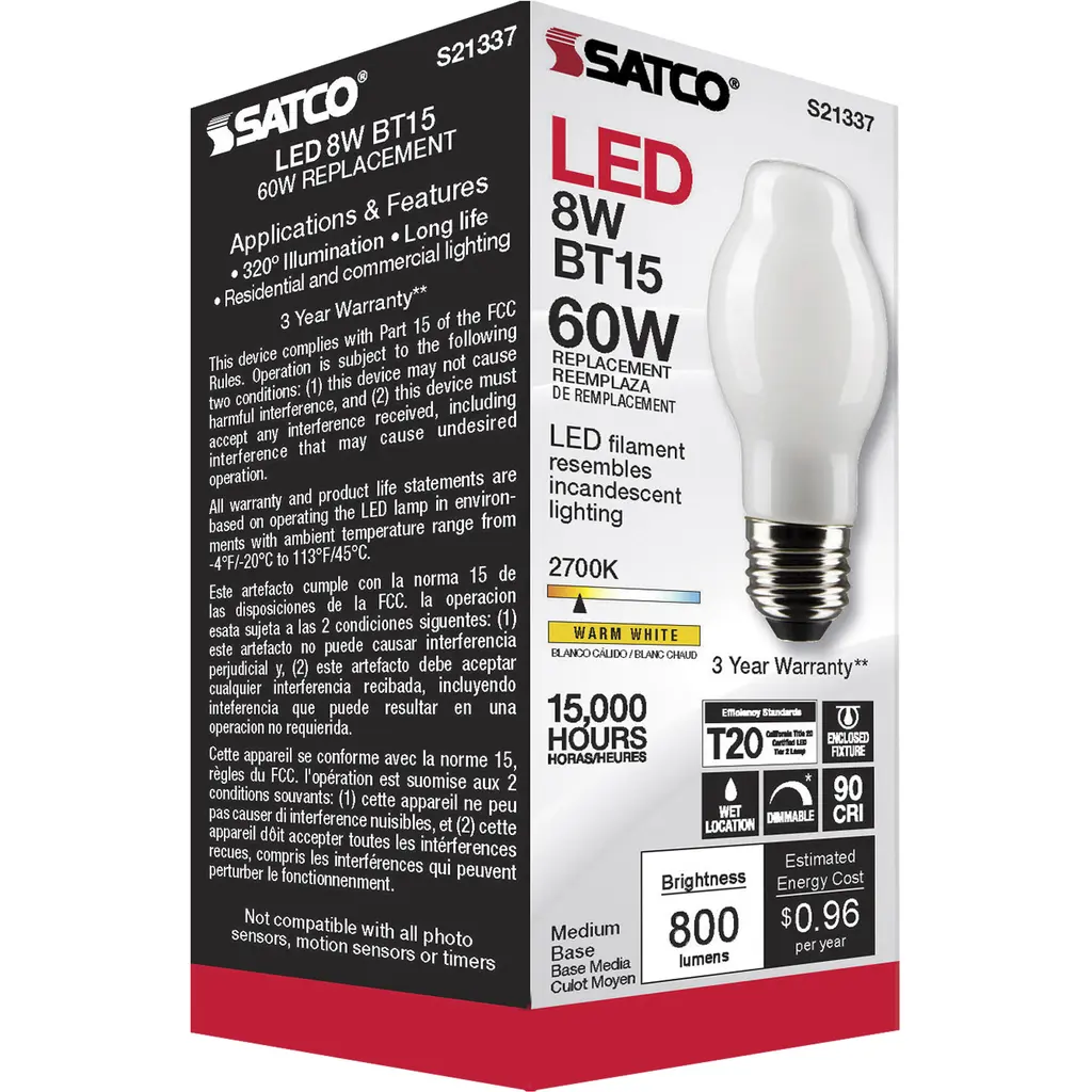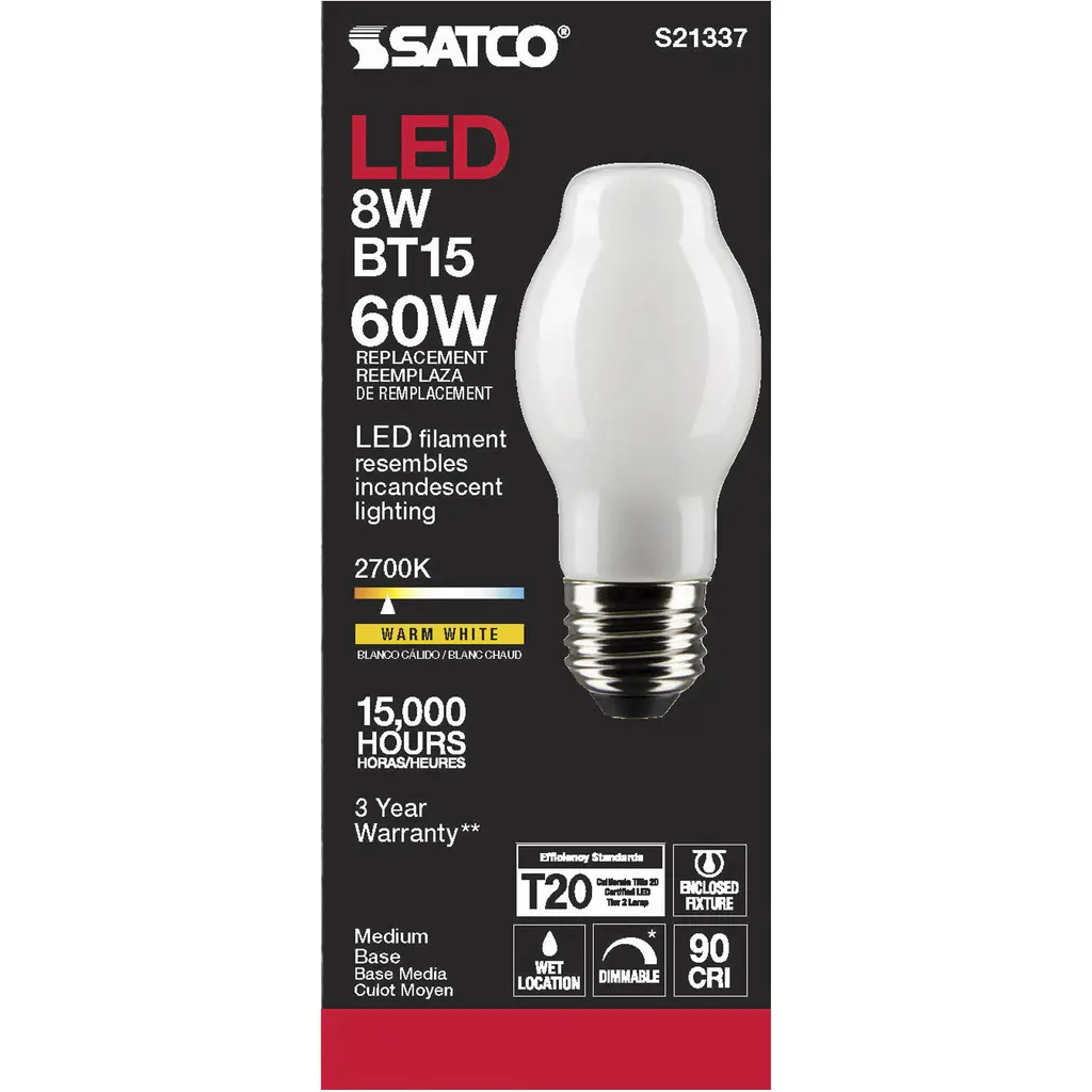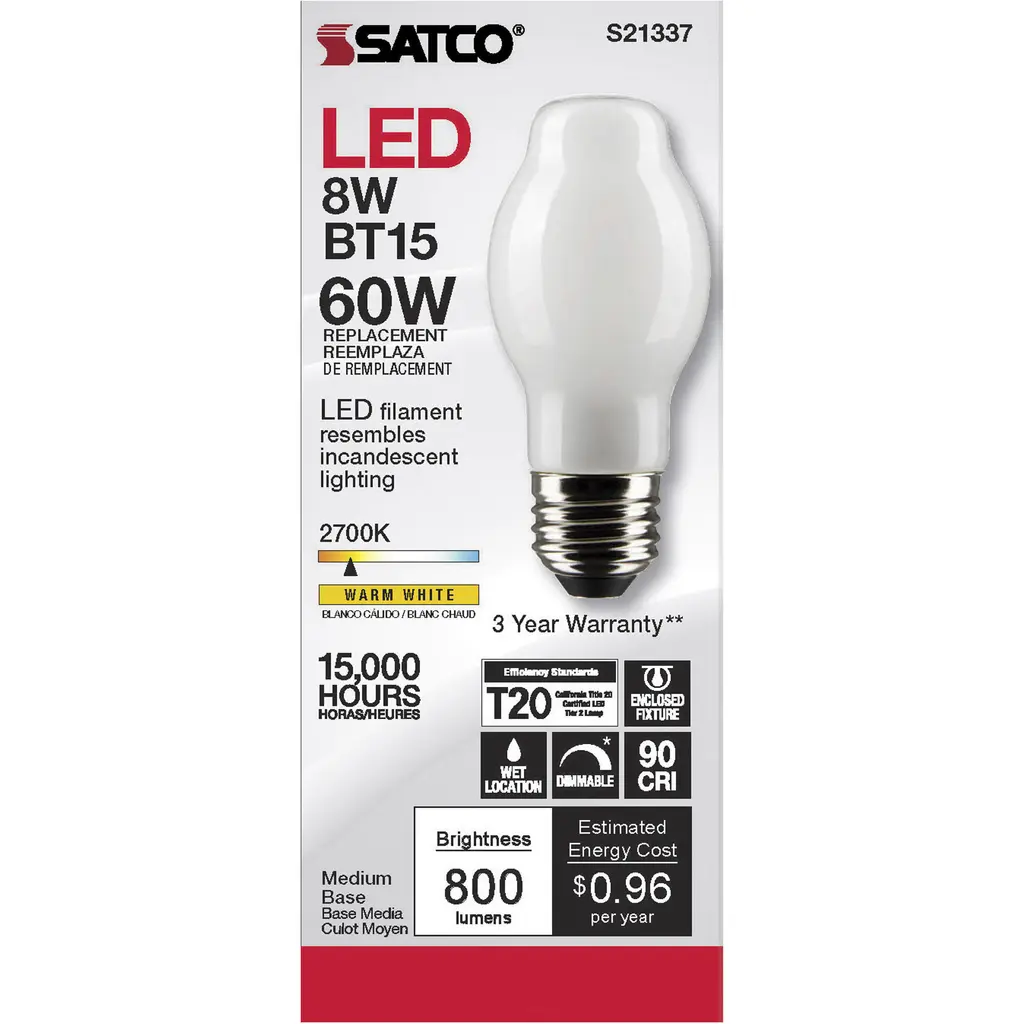 8 Watt BT15 LED Lamp - White - Medium Base - 90 CRI - 2700K - 120 Volts