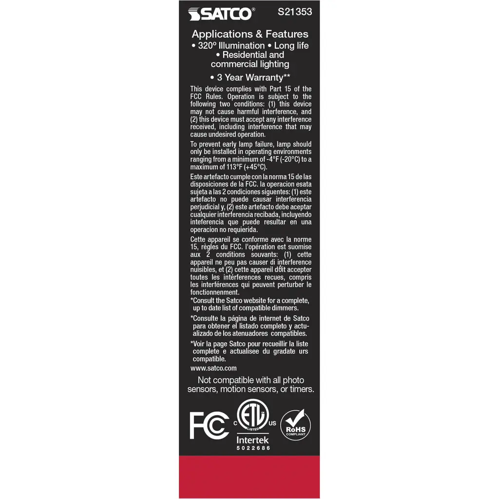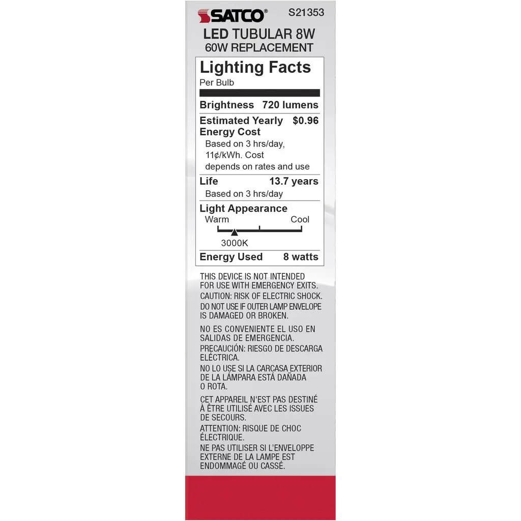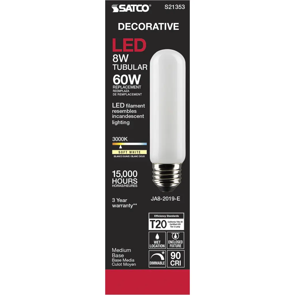 8 Watt T10 LED Lamp - Frost - Medium Base - 90 CRI - 3000K - 120 Volts