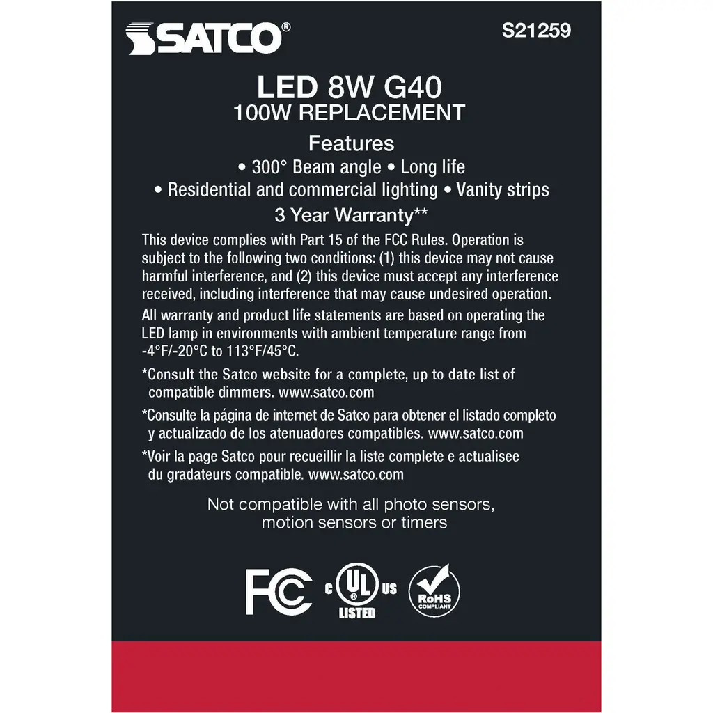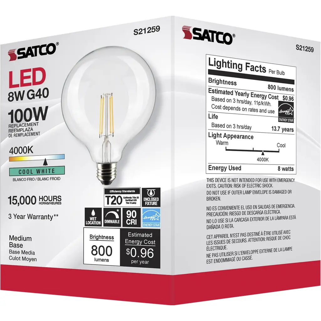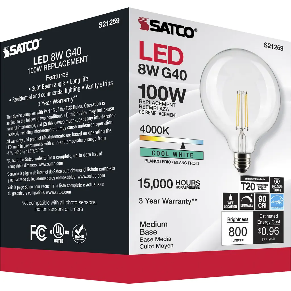 8 Watt G40 LED Lamp - Clear - Medium Base - 90 CRI - 4000K - 120 Volts