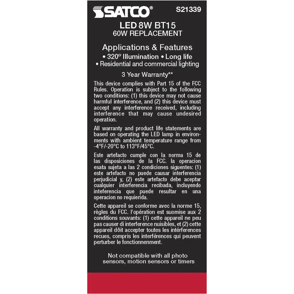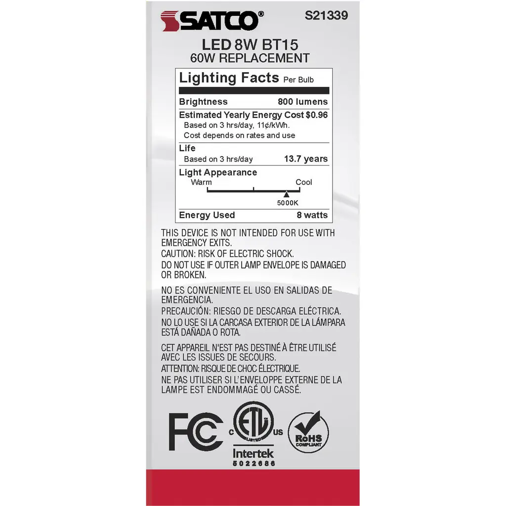 8 Watt BT15 LED Lamp - White - Medium Base - 90 CRI - 5000K - 120 Volts