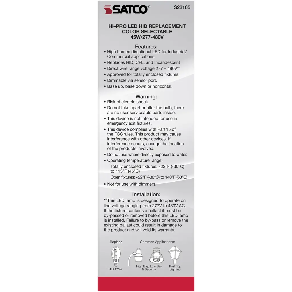 45 Watt LED HID Replacement - CCT Selectable - Type B - Ballast Bypass - Mogul Extended Base - 277-480 Volt - ColorQuick Technology