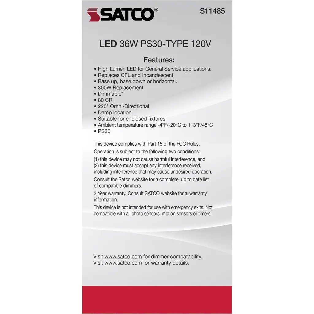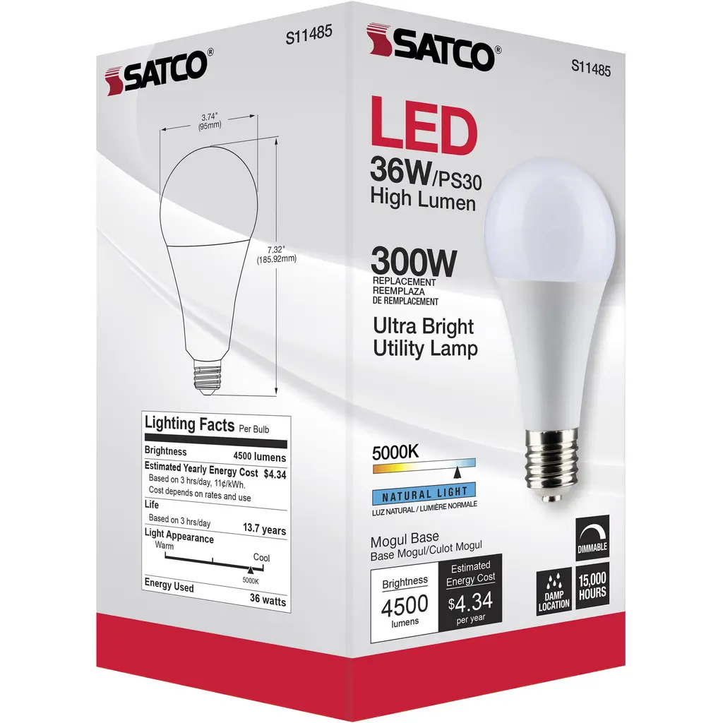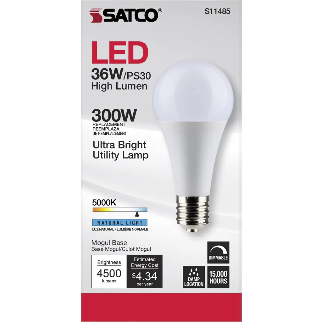 Ultra Bright Utility Lamp - 36W - PS30 LED - Dimmable - White - E39 Base - 5000K - 120V - Hi-Lumen