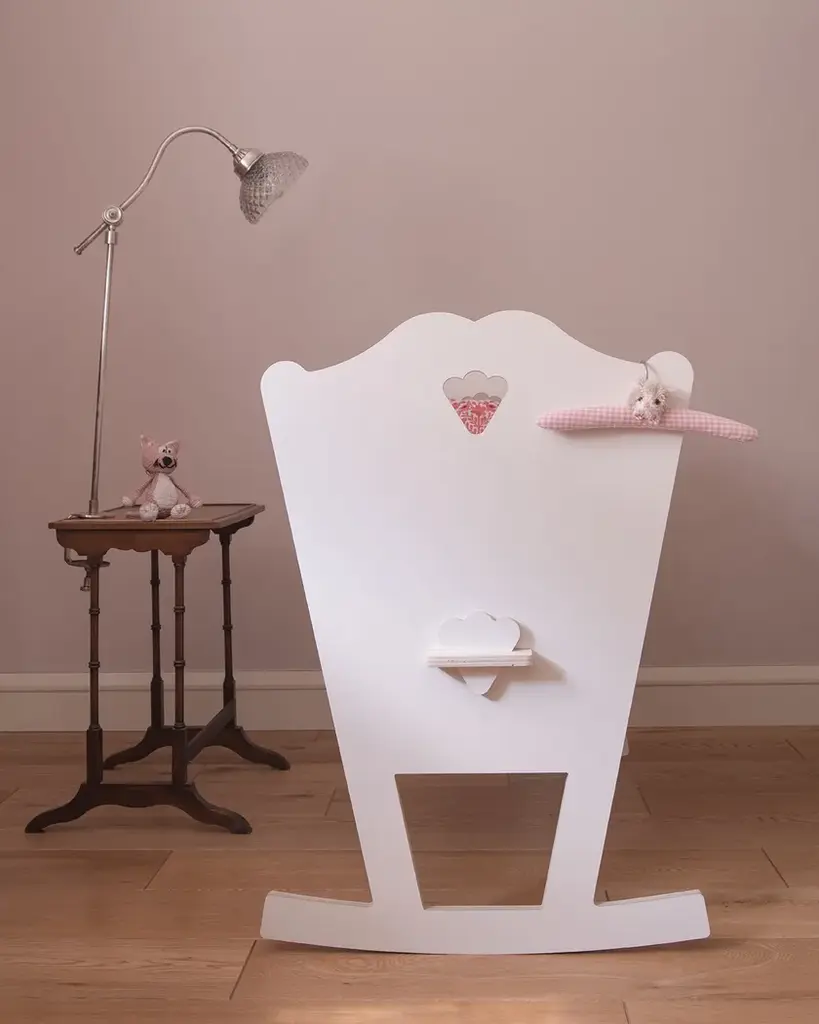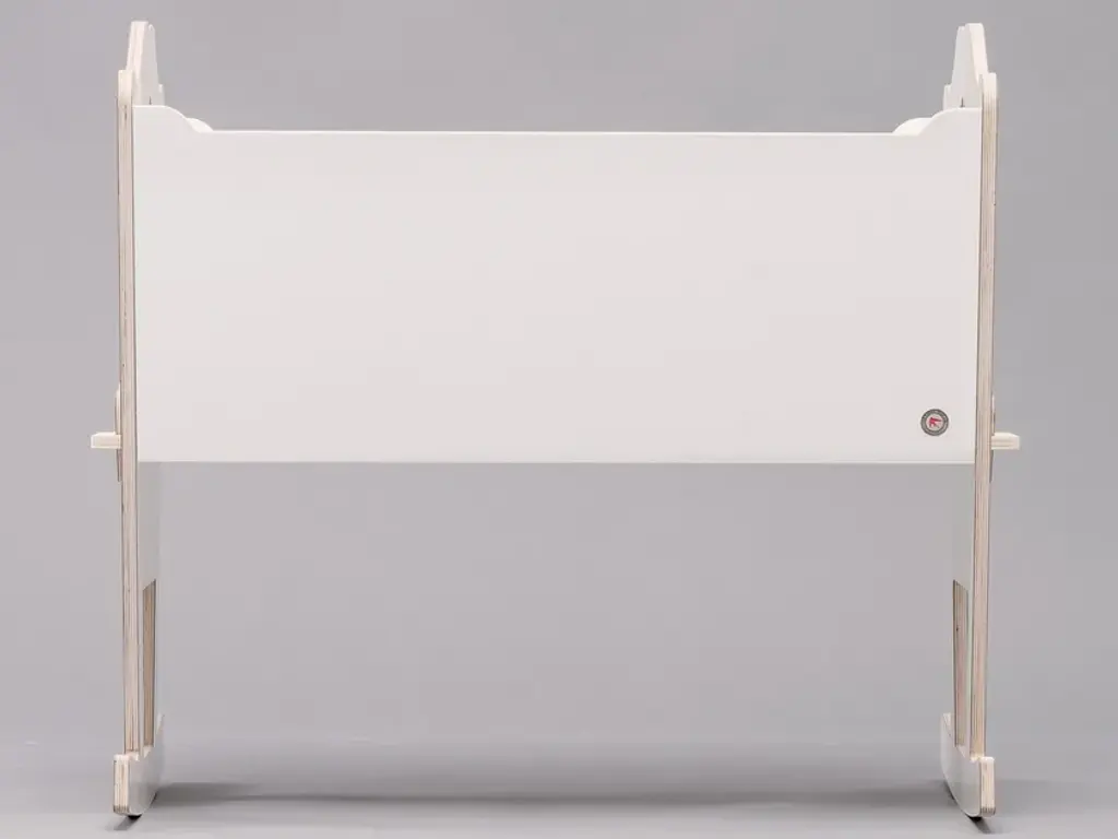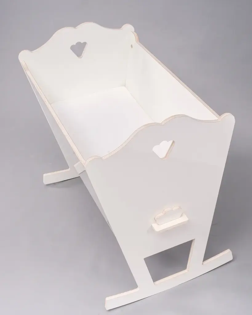 New cradle Luna for babies from the very first days of life. Minimal and comfortable design makes your baby feel safe while stimulating senses. The bottom of Luna cradle is ventilated, decorative hearts may be used as stoppers.Luna cradle is decorated with a name of a baby – this is a lovely gift for a newborn. Please write a name of a baby in your order, and we will prepare an elegant graphic especially for your baby!Mattress included (40 x 90 cm). Suitable for self-assembly, eco friendly flat packed.material: high quality plywood with elegant shiny HPL veneer