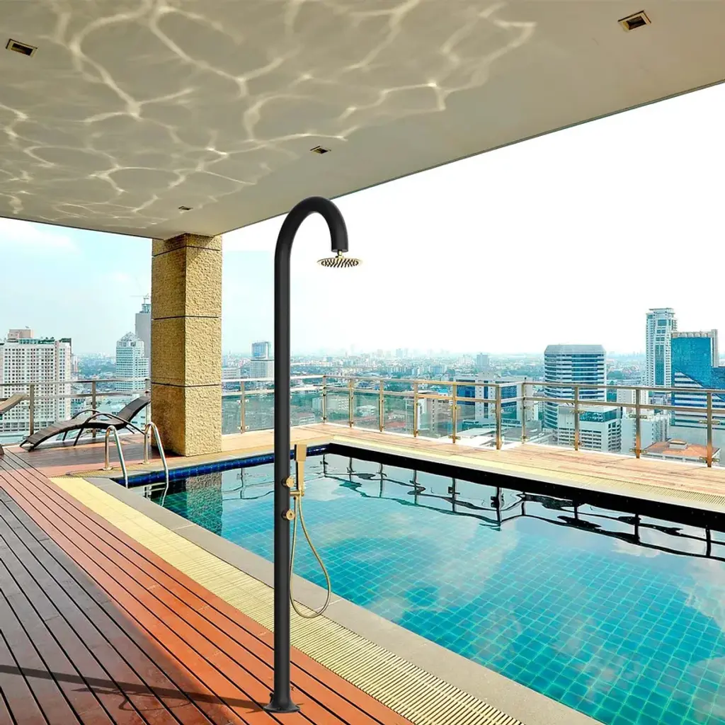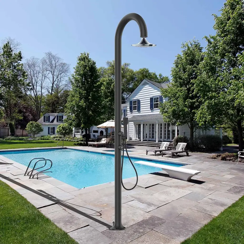 Discover the pleasure of a state-of-the-art shower with the new LUNA-ALU-D-GRIGIA-LCD Aluminum Gray Shower from SINED, a masterpiece of design and functionality designed to enhance any outdoor or indoor space in your home. With hot and cold water connections equipped with two anti-scale filters for consistently pure water, this shower not only promises a superlative bathing experience, but also becomes a stylish piece of furniture for your garden or bathroom.Unique Features for Unparalleled ComfortGray Aluminum Shower Column with Hand Shower: the main column, made of sleek gray aluminum, is equipped with a handy movable hand shower for maximum flexibility and convenience during use.Gray Aluminum LCD Shower Unit and Hand Shower: a built-in LCD display allows you to monitor the water temperature in real time, while the additional hand shower makes every moment in the shower even more enjoyable.Aluminum Gray LCD Shower Kit and Hand Shower: every detail is designed to give you an unparalleled experience, from modern design to advanced technology, this kit is everything you need to transform your daily routine.Aluminum Gray Shower Set with LCD and Hand Shower: complete with all the accessories you need for quick and easy installation, this set is the ideal solution for those looking for functionality and style.Technology and Design in the Service of Well-BeingThe 304 stainless steel shower head, with silicone anti-limescale nozzles, offers several spray modes: natural rain, water fall, and water jet, to meet your every preference. The showerhead’s built-in LED light changes color based on water temperature, adding a touch of magic to your shower experience. Infrared technology allows you to change the water flow with a simple wave of your hand, without having to touch any buttons.Easy Installation and Minimal MaintenanceLightweight and easy to install, the LUNA-ALU-D-GRIGIA-LCD shower requires minimal maintenance. It is ideal for a wide range of outdoor and indoor environments: gardens, swimming pools, spas, as well as hotels, campgrounds, and bathing establishments. Thanks to its resistance to weather and UV rays, this shower is a long-lasting solution.A Personalized ExperienceWith the ability to adjust the temperature thanks to the practical mixer and to choose between bottom or side water connection, each shower becomes a unique moment, customized to your preferences. The round base ensures stability and safety, while high-quality materials, such as the chrome-plated brass faucets, guarantee durability and impeccable aesthetics.Included in the package you will find all the necessary accessories for quick and easy assembly, as well as a protective 190 cloth bag for storing the product when not in use.The new LUNA-ALU-D-GRIGIA-LCD gray aluminum shower from SINED represents the perfect fusion of technology, design and practicality. Whether you want to install it in your home bathroom or enrich outdoor spaces, this shower is ready to transform your every routine into a moment of pure relaxation and well-being. Discover today how you can reinvent the shower experience with SINED.Main Features:– Mounts great accessories.– Easy to clean and maintain.– Separate cold and hot water inlets.– Possibility of water inlets on both sides and bottom.– Highly resistant to atoferic agents and UV rays.– Can be mounted in your home bathroom or outdoor spaces and make it into garden furniture or outdoor activities.– For indoor and outdoor use– Ideal for gardens swimming pools spas spas.– Height 223.5 cm– Base diameter 17.5 cm– Double inlet pipes: Hot and Cold Water– Handy movable hand shower– Double Hot and Cold Water Diverter in both Showerhead and Foot Wash– Special Large Size Stainless Steel Shower Head