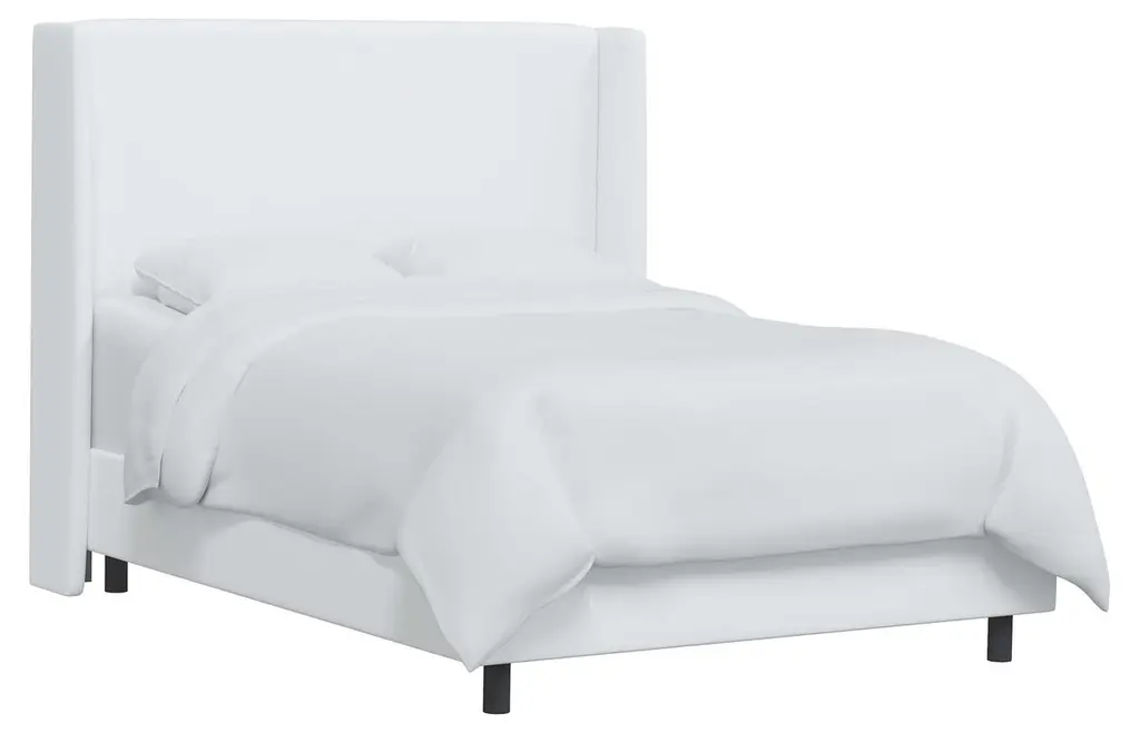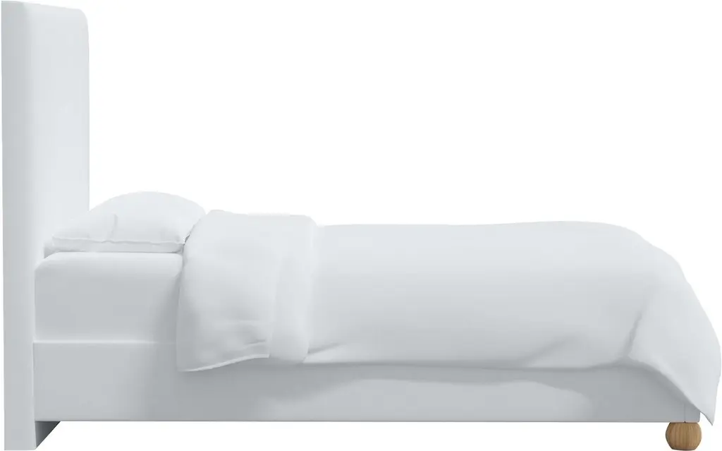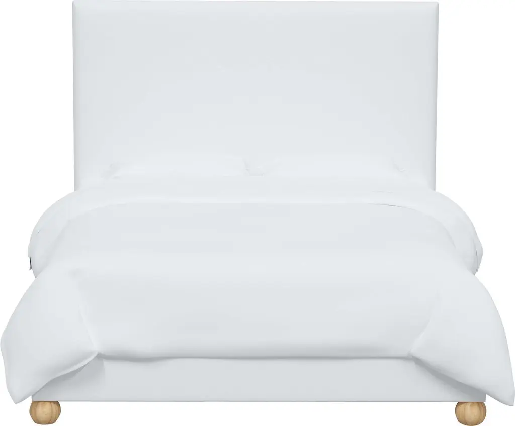 This bed's substantial headboard and rails, along with its crisp linenlike upholstery, give it a timeless sophistication that will complement just about any bedroom style. The bun feet add panache. Made in the USA, it has a generously padded headboard so that you can comfortably watch TV or read.