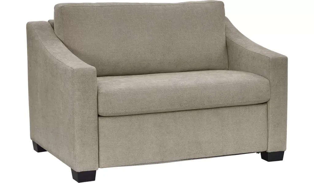 Ensure you will always have a comfy spot for overnight guests with our Luna sleeper. Featuring sleek, sloped arms and tapered legs, this sleeper not only looks effortlessly stylish, but it also provides supportive comfort with high-density cushioning. Upholstered in 100% polyester fabric, this sleeper also has special order options to choose from so that you can find the exact look you want. Available in twin, full, queen and queen plus sizes.