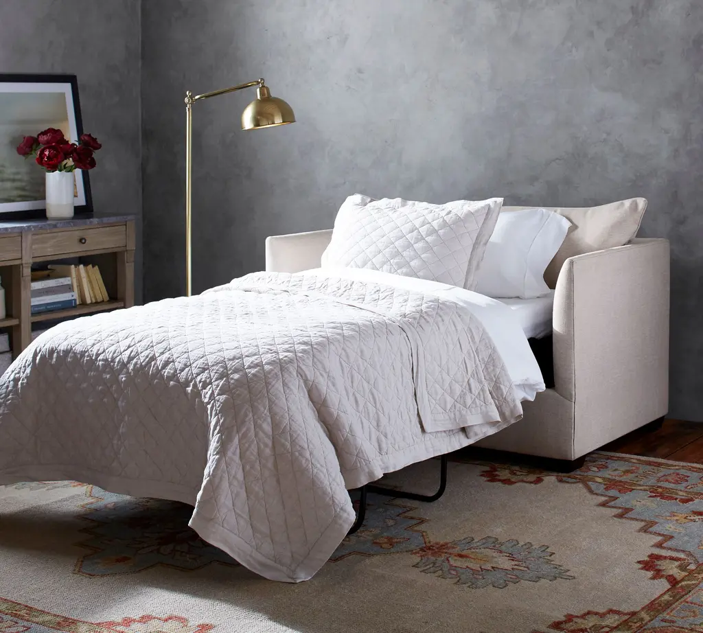 The innovative Luna Collection is the sleep solution you’ve been looking for. With its simplified profile and thick cushions, this twin sleeper features a foam mattress and is a versatile and comfy piece for a seating area, and also ideal for last-minute overnight guests.