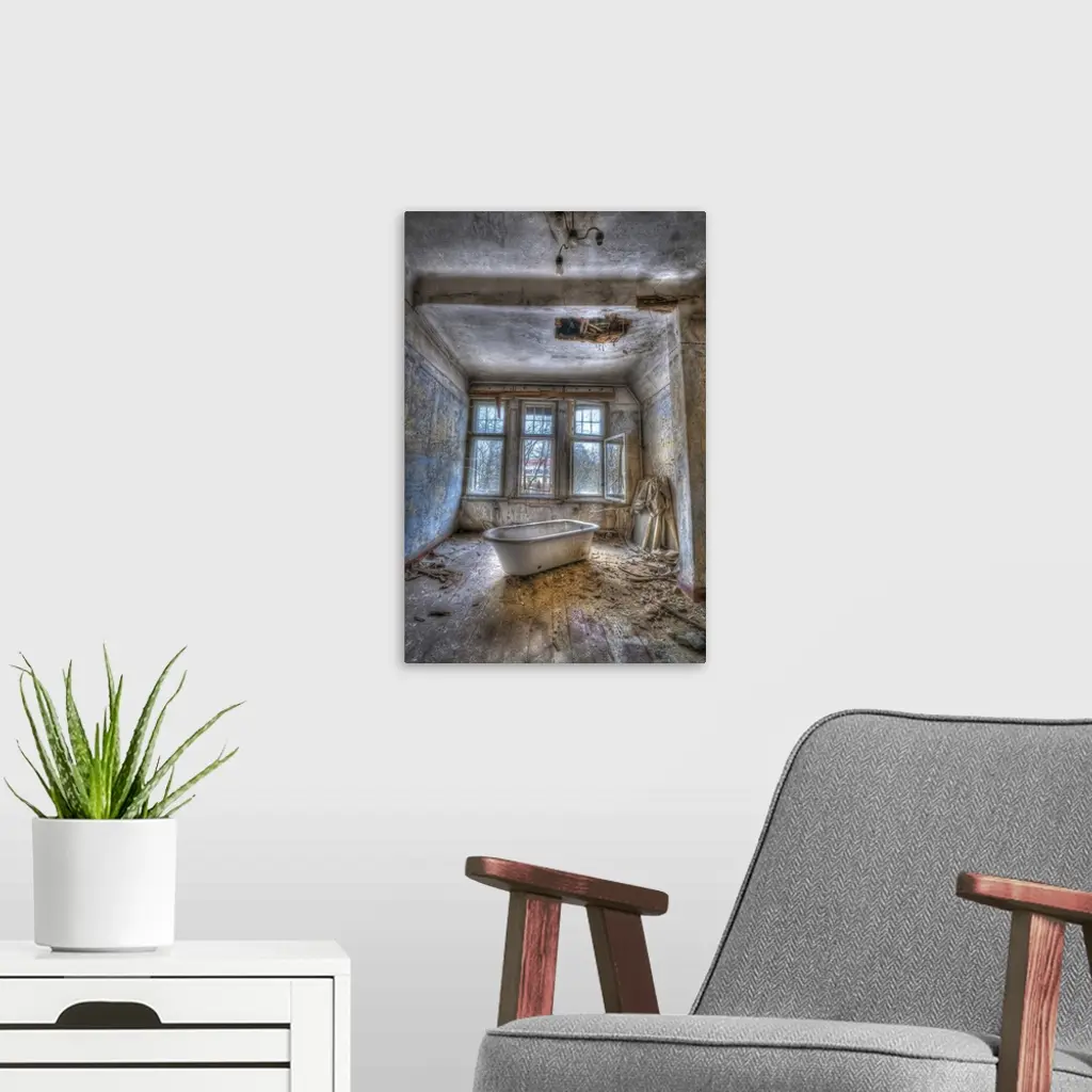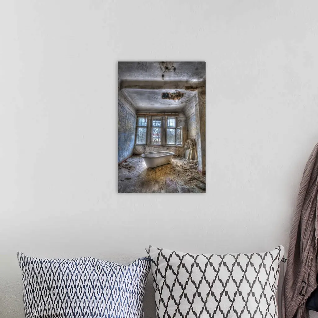 Derelict asylum interior with bath