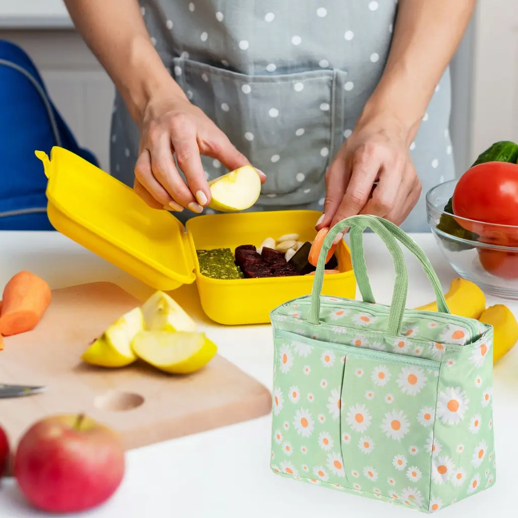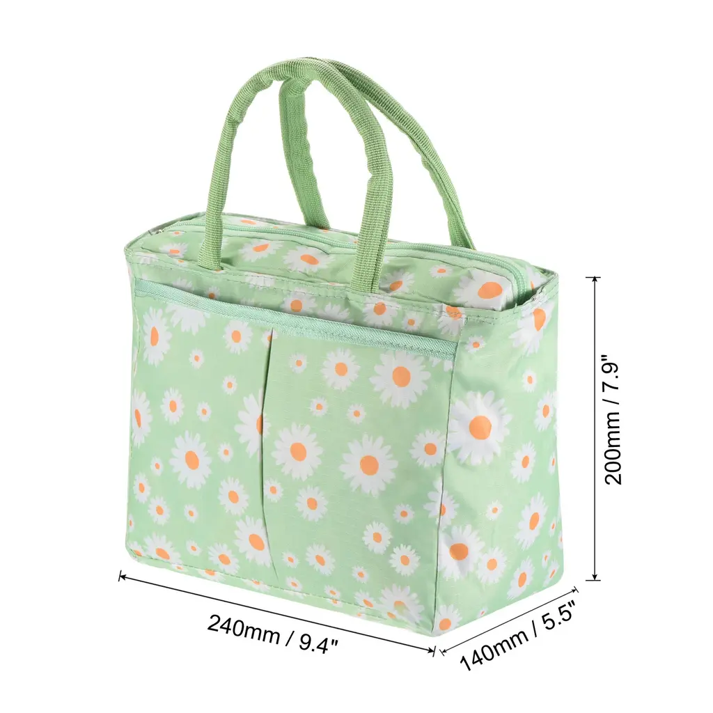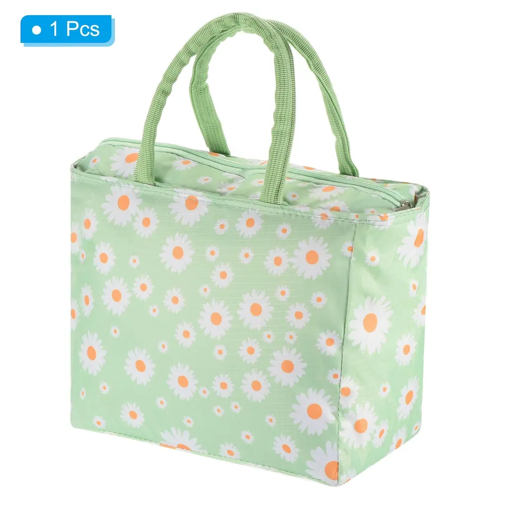 Our insulated lunch box can be used in offices, picnics, camping trips, travel, or any other outdoor activities. You can pack a variety of foods and drinks, including sandwiches, salads, fruits, and more. It is great for keeping your lunch fresh and delicious, no matter where you are.SpecificationColor: GreenMaterial: Oxford Cloth, Pearl Cotton, Insulation Aluminum FilmSize: 240 x 140 x 200mm / 9.4 x 5.5 x 7.9 inch(L*W*H)Packing List: 1 x Insulated Lunch BagAdvantageOur lunch box has a spacious design and provides enough space to fit all of your lunch items. It is made with advanced insulation technology, which keeps your food for hours. The handle design is for easy carrying. It is lightweight and foldable, without taking up too much space. It is made with quality materials that are sturdy, reusable, and easy to clean. InstructionPack your favorite foods and drinks into the lunch box and close the lunch box securely. Make sure all closures are properly fastened to prevent spills and leaks. When you are ready to eat, simply open the lunch box and enjoy your fresh and delicious meal.NOTE: After use, wipe down the lunch box with a damp cloth or sponge to clean off any spills or dirt. Let it air dry before storing it away.