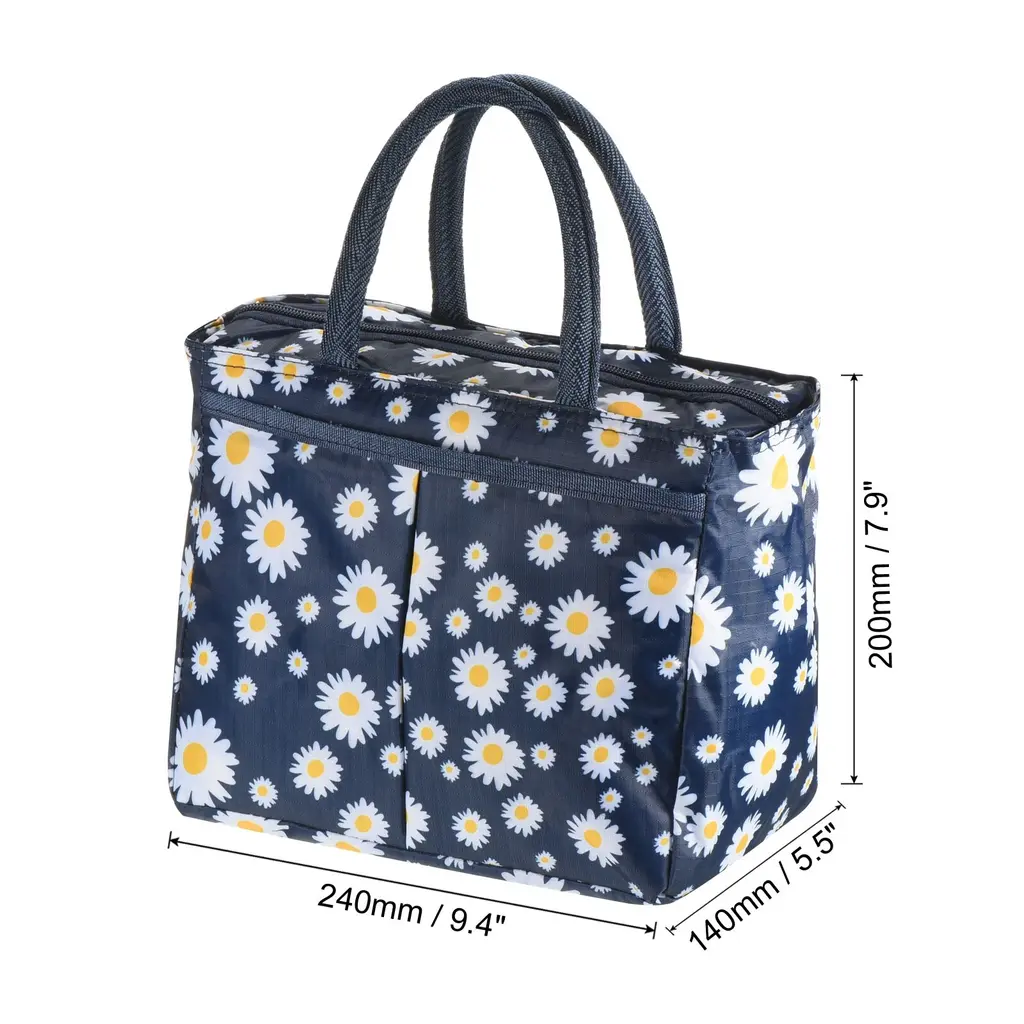 Lunch Bag Tote Bag With Pocket For Work Picnic 9.4"x5.5"x7.9", Green - Navy Blue