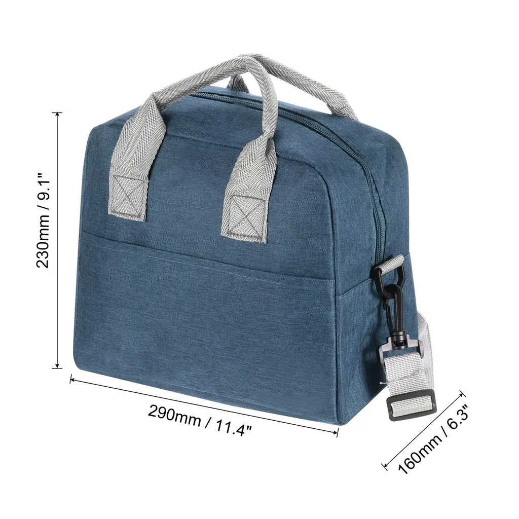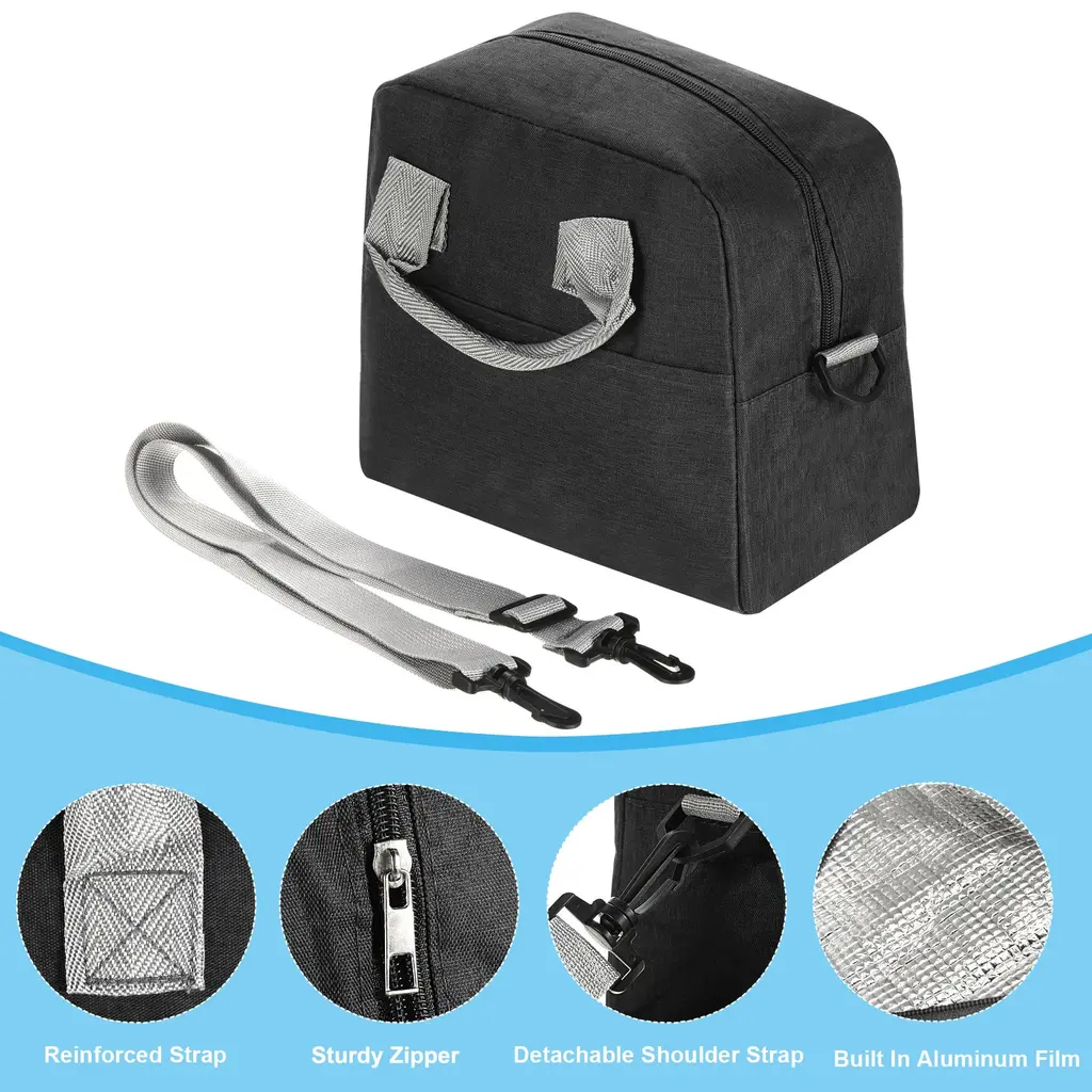 Our insulated lunch box can be used in offices, picnics, camping trips, travel, or any other outdoor activities. You can pack a variety of foods and drinks, including sandwiches, salads, fruits, and more. It is great for keeping your lunch fresh and delicious, no matter where you are.SpecificationColor: BlackMaterial: 300D Positive Ion, Pearl Cotton, Insulation Aluminum FilmSize: 290 x 160 x 230mm / 11.4 x 6.3 x 9.1 inch(L*W*H)Packing List: 1 x Insulated Lunch BagAdvantageOur lunch box has a spacious design and provides enough space to fit all of your lunch items. It is made with advanced insulation technology, which keeps your food for hours. The handle and adjustable shoulder strap design is for easy carrying. It is lightweight and foldable, without taking up too much space. It is made with quality materials that are sturdy, reusable, and easy to clean. InstructionPack your favorite foods and drinks into the lunch box and close the lunch box securely. Make sure all closures are properly fastened to prevent spills and leaks. When you are ready to eat, simply open the lunch box and enjoy your fresh and delicious meal.NOTE: After use, wipe down the lunch box with a damp cloth or sponge to clean off any spills or dirt. Let it air dry before storing it away.