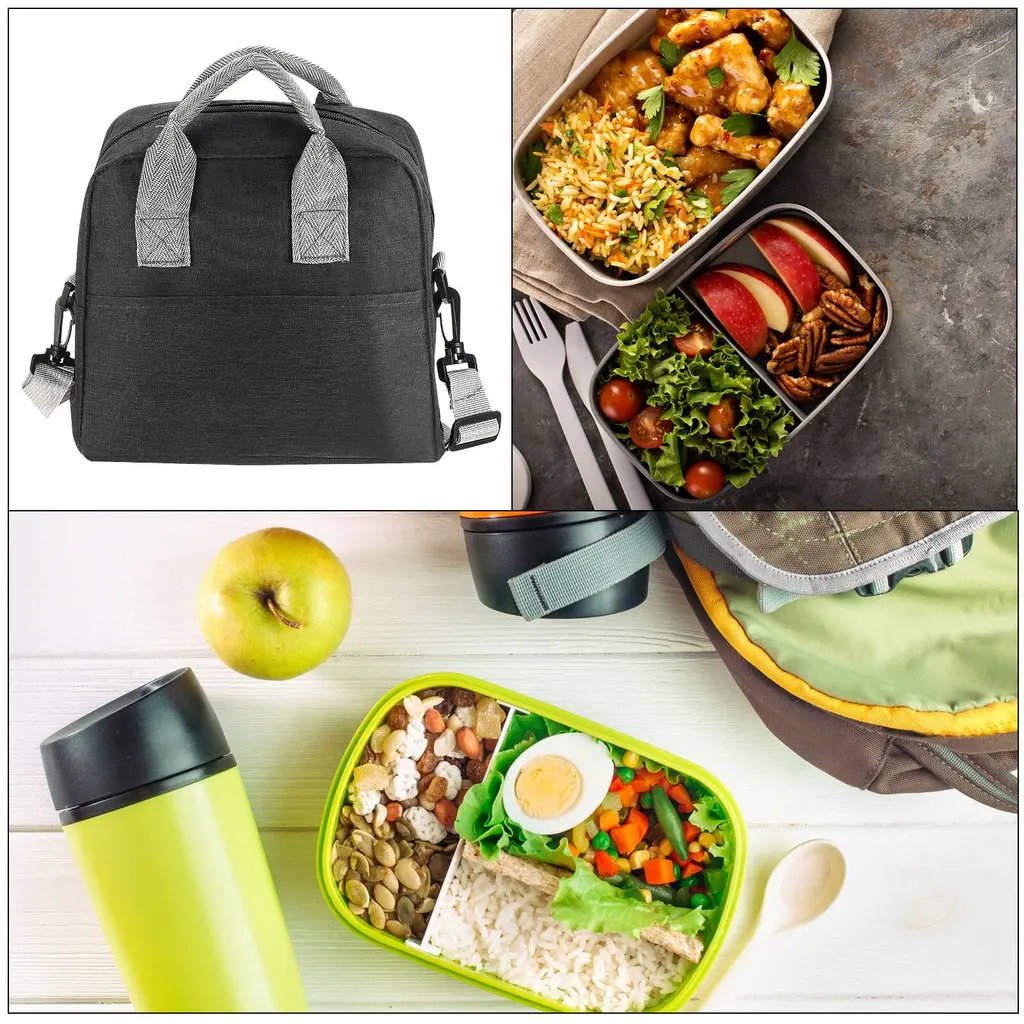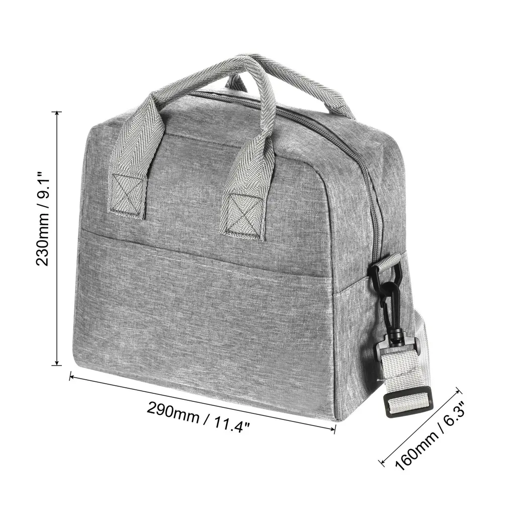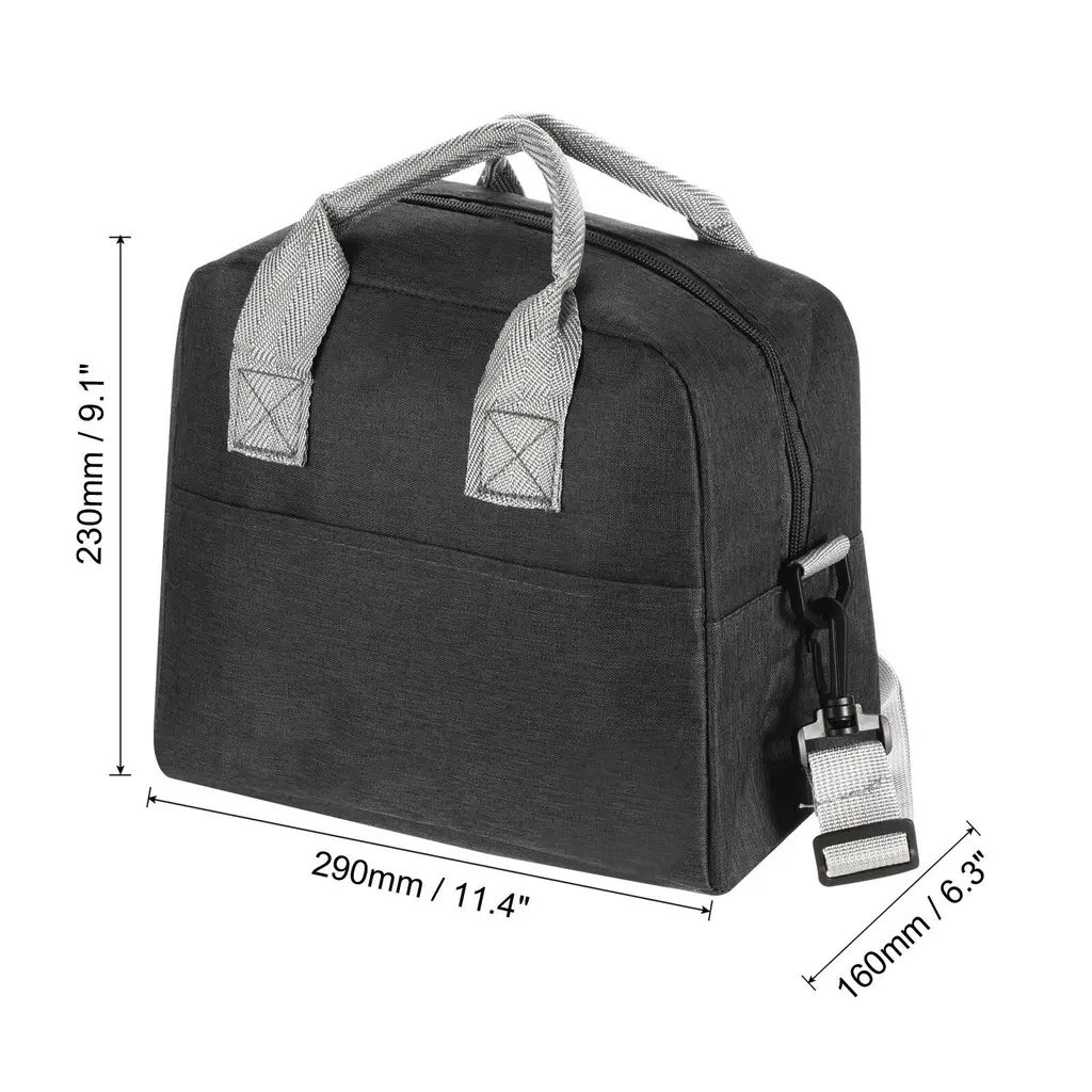 Lunch Bag Tote Bag With Strap For Work Picnic 11.4"x6.3"x9.1", Black - Gray