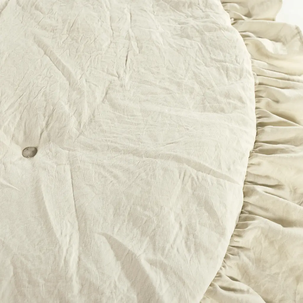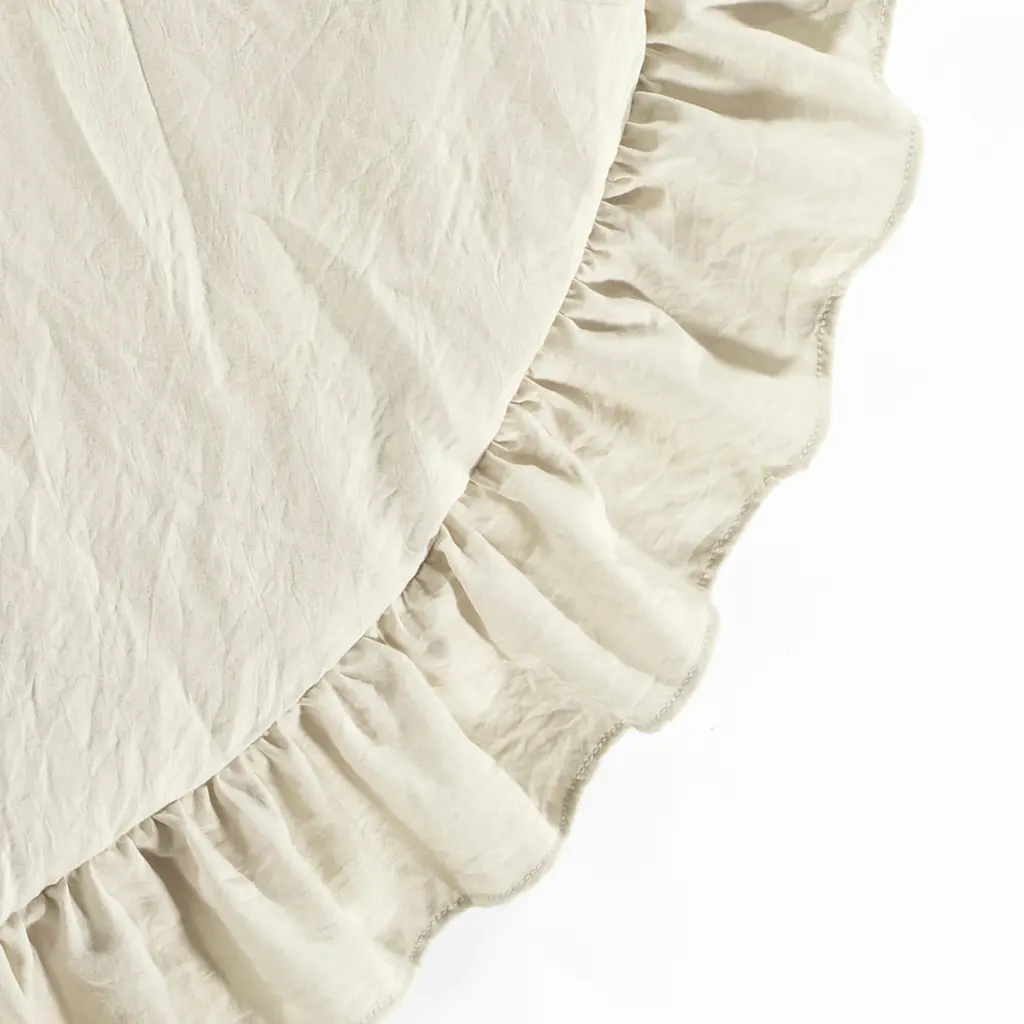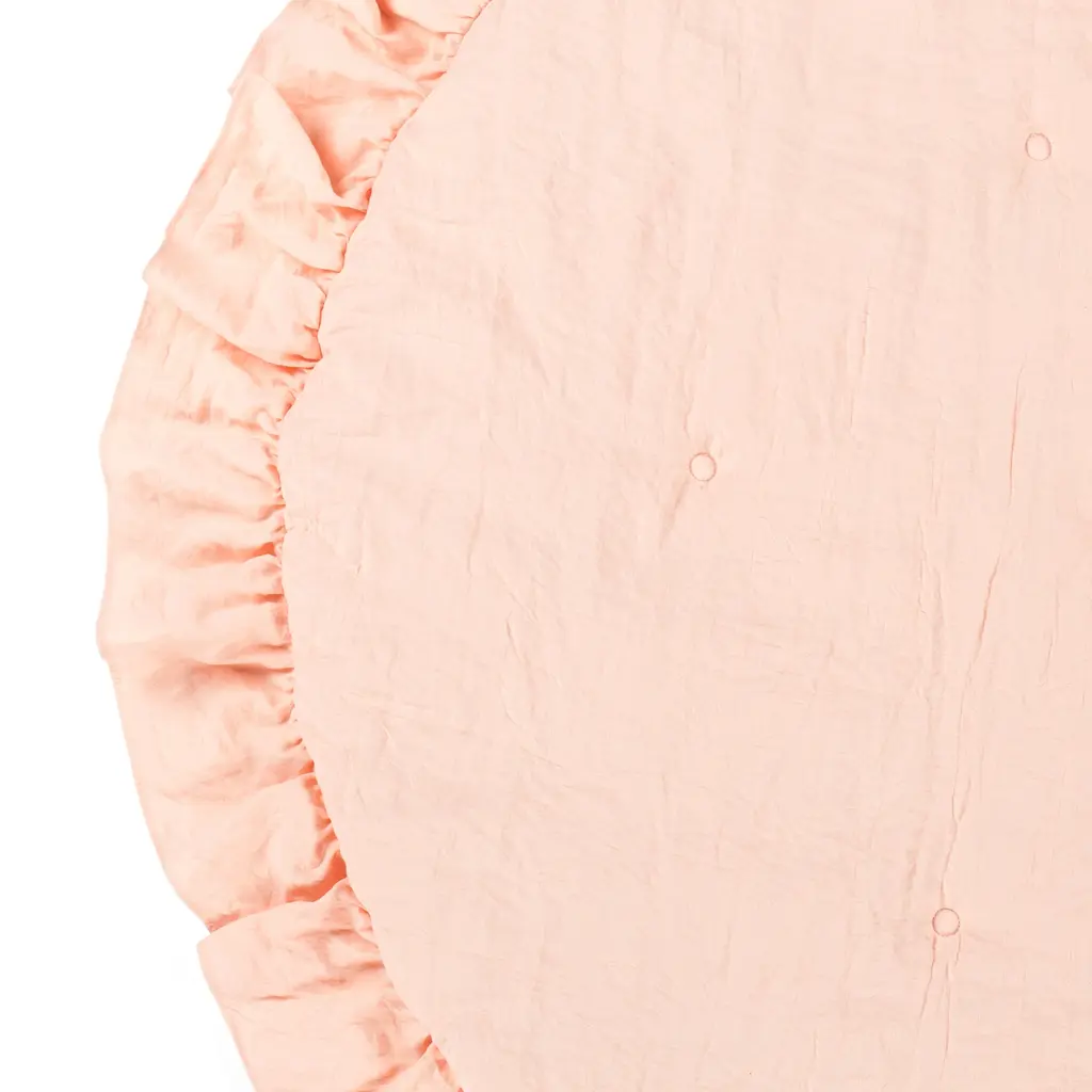 This generously sized STANDARD 100 by OEKO-TEX® certified super-soft round mat is the perfect spot for your little one to crawl around and play on safely. The ruffle detail brings a charming touch that will fit right into your stylish nursery decor.Bring this playful addition to your nursery for added design and a safe play area for your bundle of joy. This round play mat is a lovely, incredibly soft place for you and your baby to be able to enjoy play time. It is embellished with a graceful ruffle around the edge. This round mat has a 36 inch diameter. This play mat is STANDARD 100 by OEKO-TEX® certified, which means the fabric, dye and all components have been tested in an independent laboratory and certified against a list of more than 350 harmful substances. Easy-care fabric makes upkeep of this play mat a breeze. Please refer to label for full care instructions.Features: