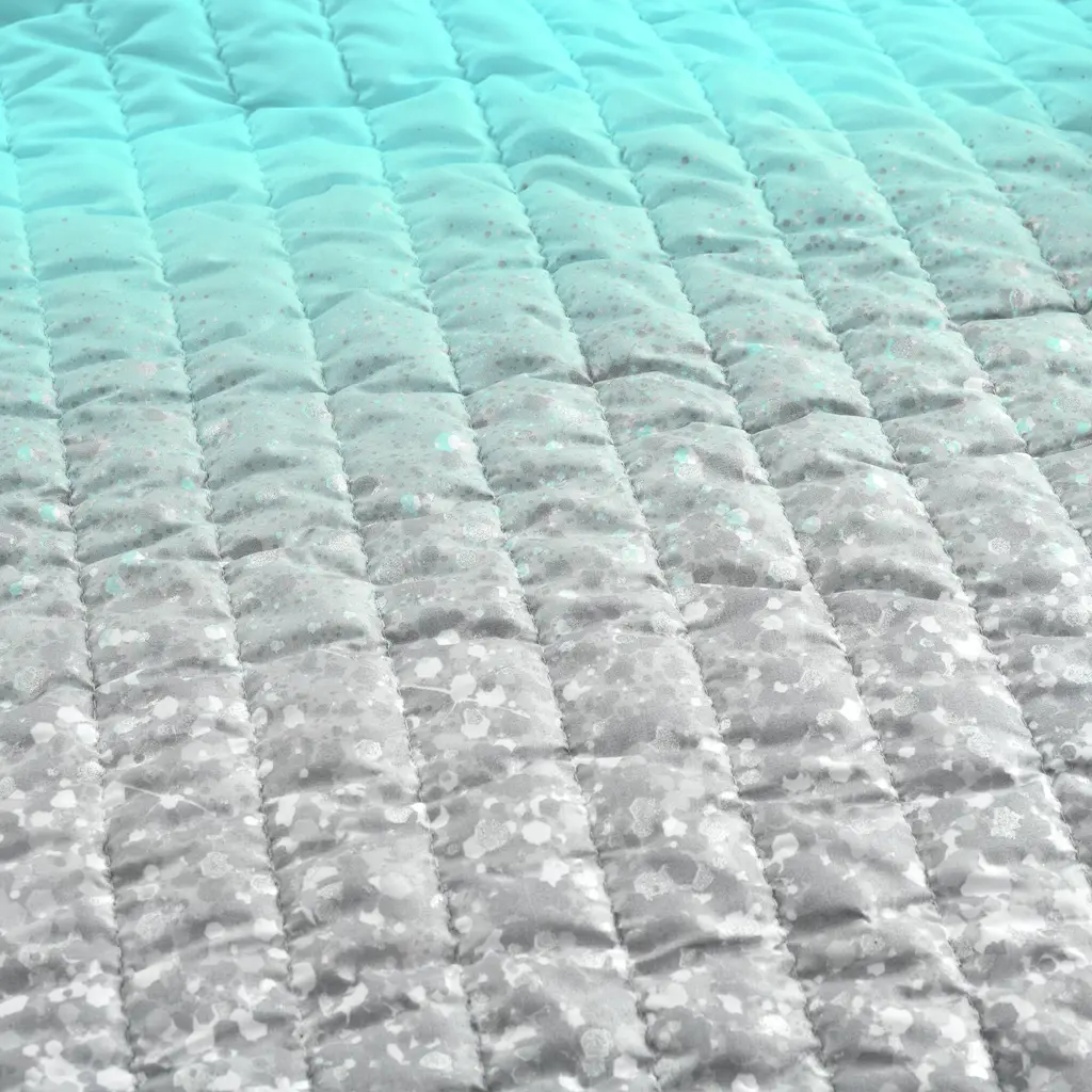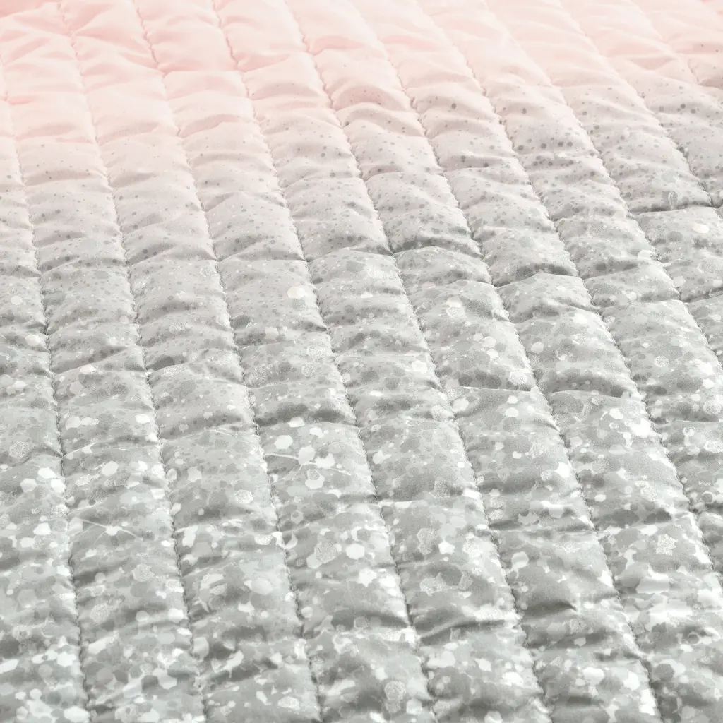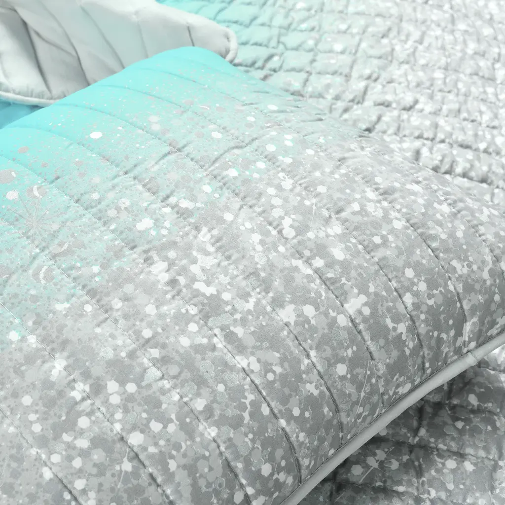 Give your child or teen's bedroom a glamorous makeover with this glitter quilt set. The sparkly glitter design fades into a bright and beautiful quilt color for a very trendy look. Your child will love the printed sparkles and ombre style.You can never go wrong with glitter! This quilt set is the perfect way to add a glamorous touch to your child's bedroom. The glitter ombre drips into a stylish fun color is super on trend and a great way to introduce a pop of color. The blend of patterns will seamlessly complement the bedroom's existing decor. Twin is a two piece set includes one quilt and one matching sham. Full/Queen is a three piece set includes one quilt and two matching shams. This set is machine washable for your convenience. Please refer to label for full care instructions.Features:Twin Measures:Full/Queen Measures: