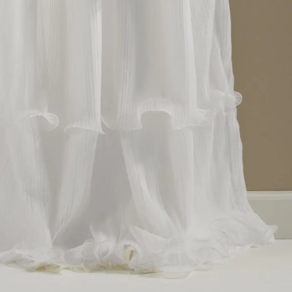 Cascades of sheer ruffles on smooth microfiber, soft hue, and flowy silhouette make Nernia window panels stand out from the rest. 3 Rod pocket slides onto curtain rod for quick installation.
