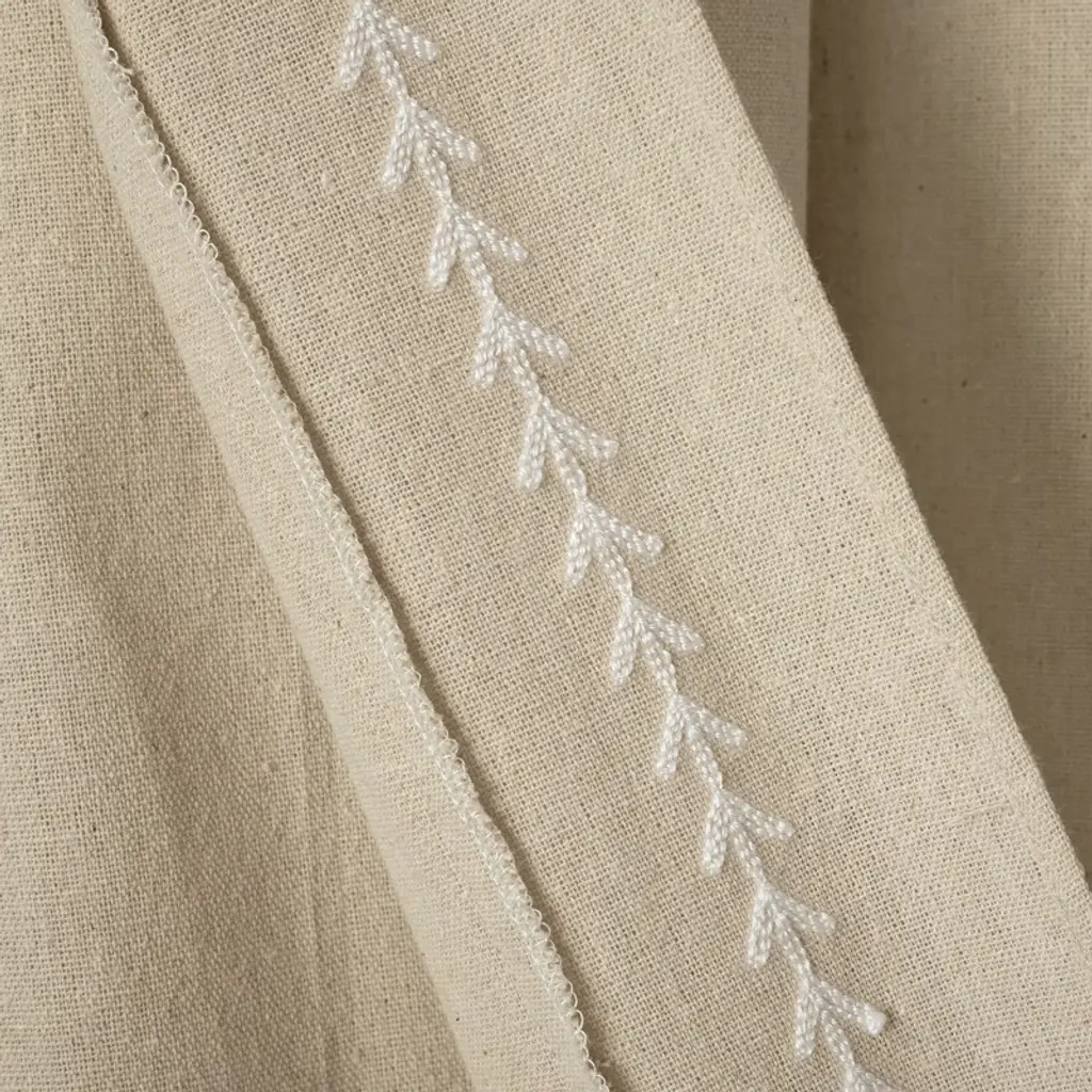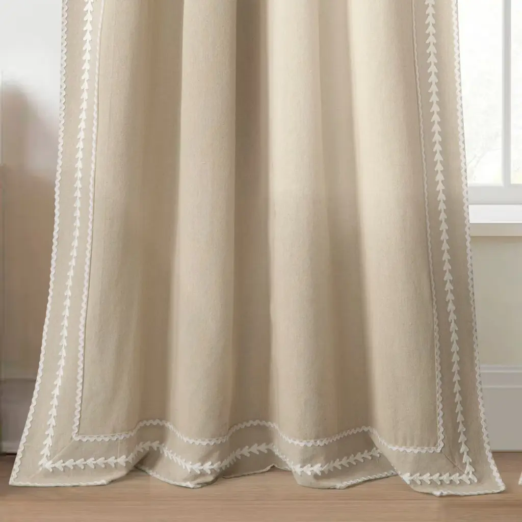 Delicately adorned with intricate ric rac embroidery, this panel adds a touch of charm and elegance to any space. Let natural light filter through while enjoying a unique blend of classic and contemporary style in this curtain panel. Keep your style simple and textured with this embroidered curtain panel. With an elegant touch from the detailed border, this window curtain can be styled in any space to accent your welcoming look. Sold as a single panel, this curtain has a 42 inch width. Please refer to label for full care instructions.