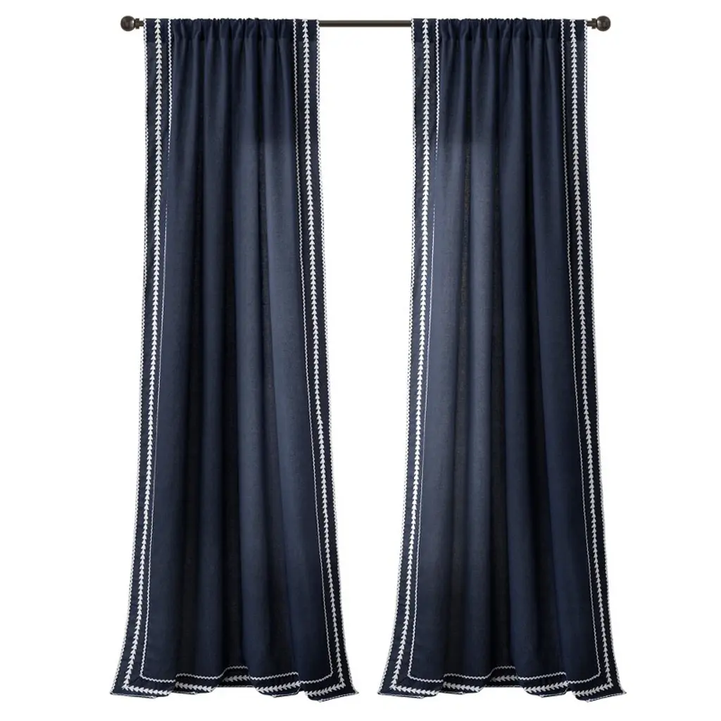 Lush Décor Olivia Ric Rac Embroidery Border Window Panel Navy/white Single 42x84