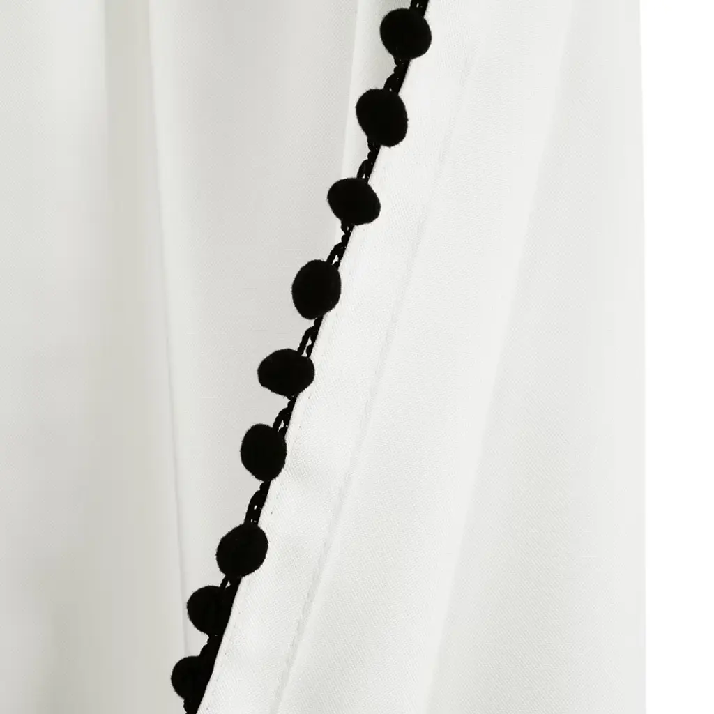 Simple and elegant, the pom pom tassels lining the curtain sides adds the perfect touch of pizzazz to the solid color window curtains. Perfect touch in kids to adults bedrooms. Featuring a 3 rod pocket for easy instillation of window panel.
