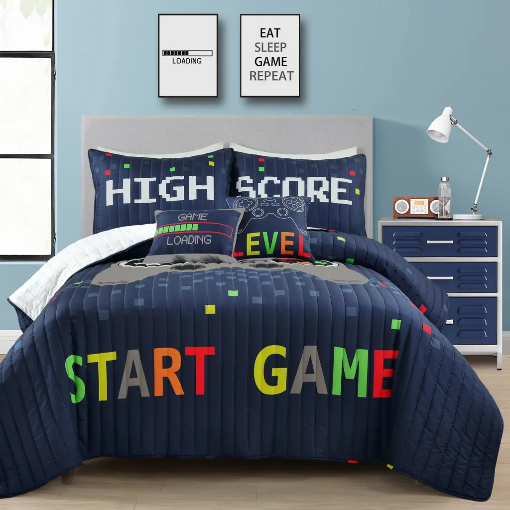 Lush Decor Video Games Kids 5-Piece Quilt Set - Navy - Full - Queen
