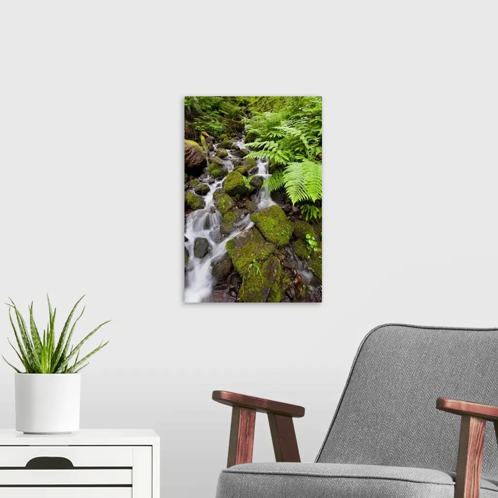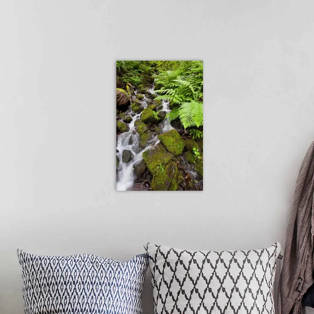 Lush Green Foliage Along A Creek In Columbia River Gorge, Oregon wall art for home and office decor. Discover canvas art prints, photos, mural, big canvas art and framed wall art in GreatBigCanvas.com's varied collections.