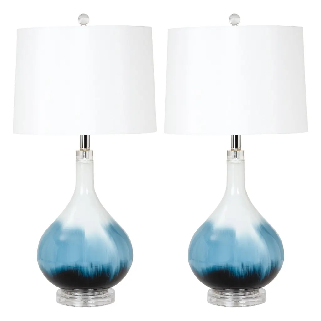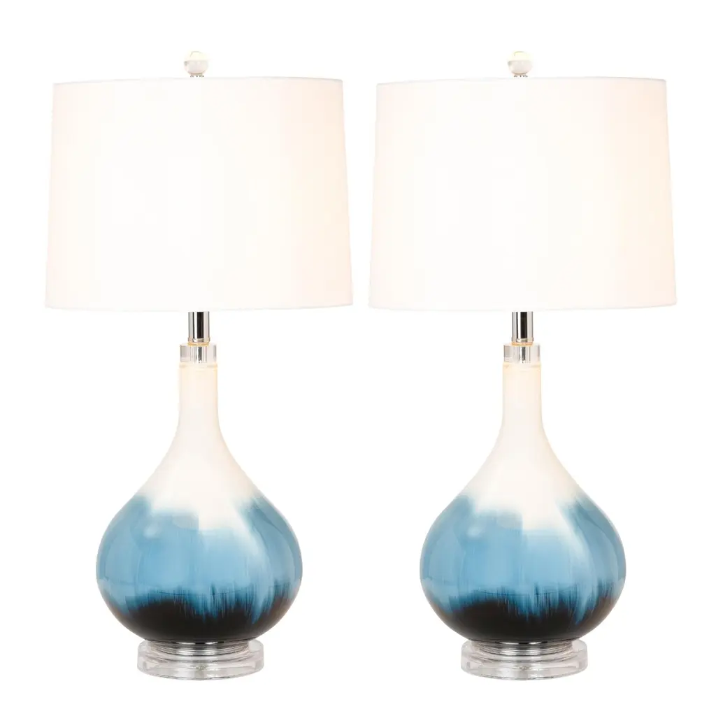 Lux Lighting Ombre 28" Stunning Blue Tone Glass Table Lamps With Linen Shade (Set Of 2) 3-Way Switch - Blue