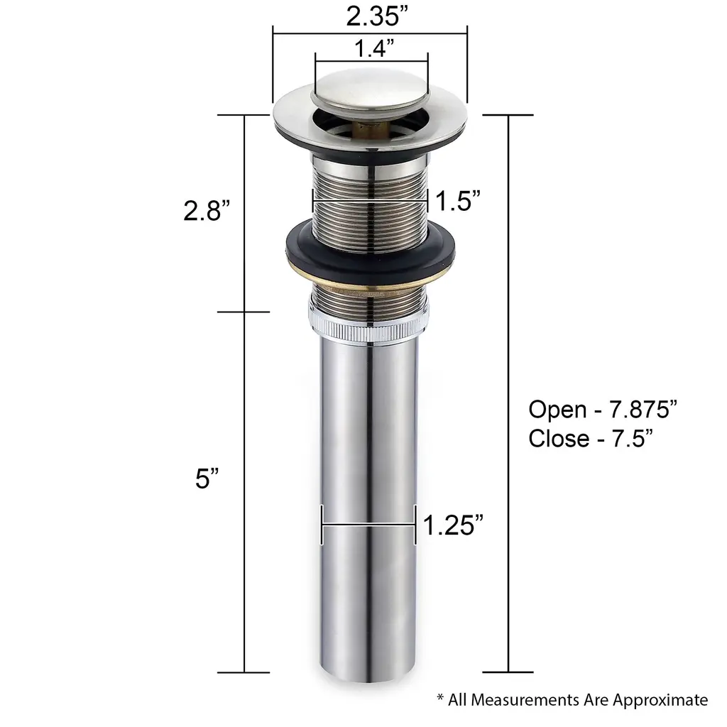 Luxier Ds03-T Bathroom Sink Push Pop-Up Drain Stopper With No Overflow - Brushed Nickel