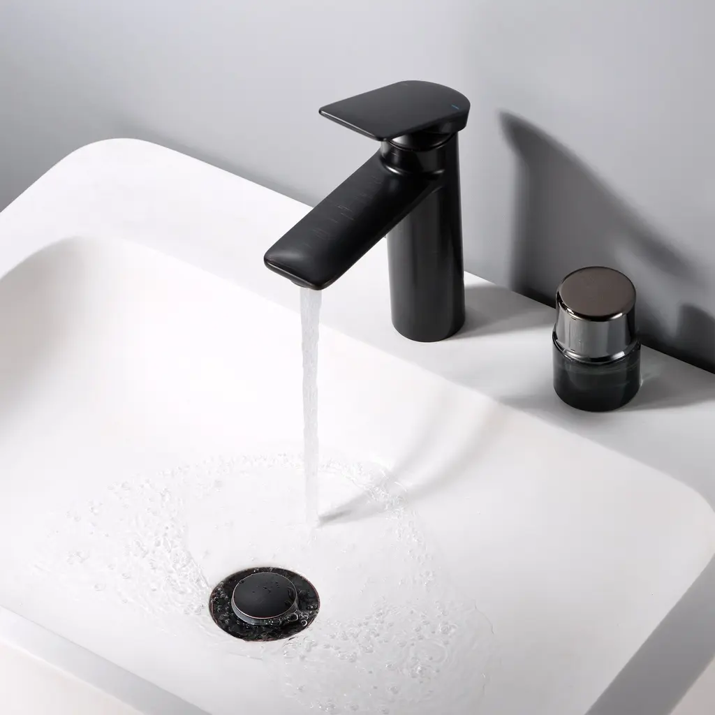 Luxier Ds03-T Bathroom Sink Push Pop-Up Drain Stopper With No Overflow - Matte Black