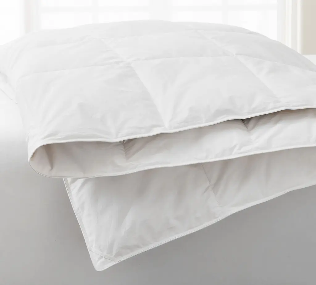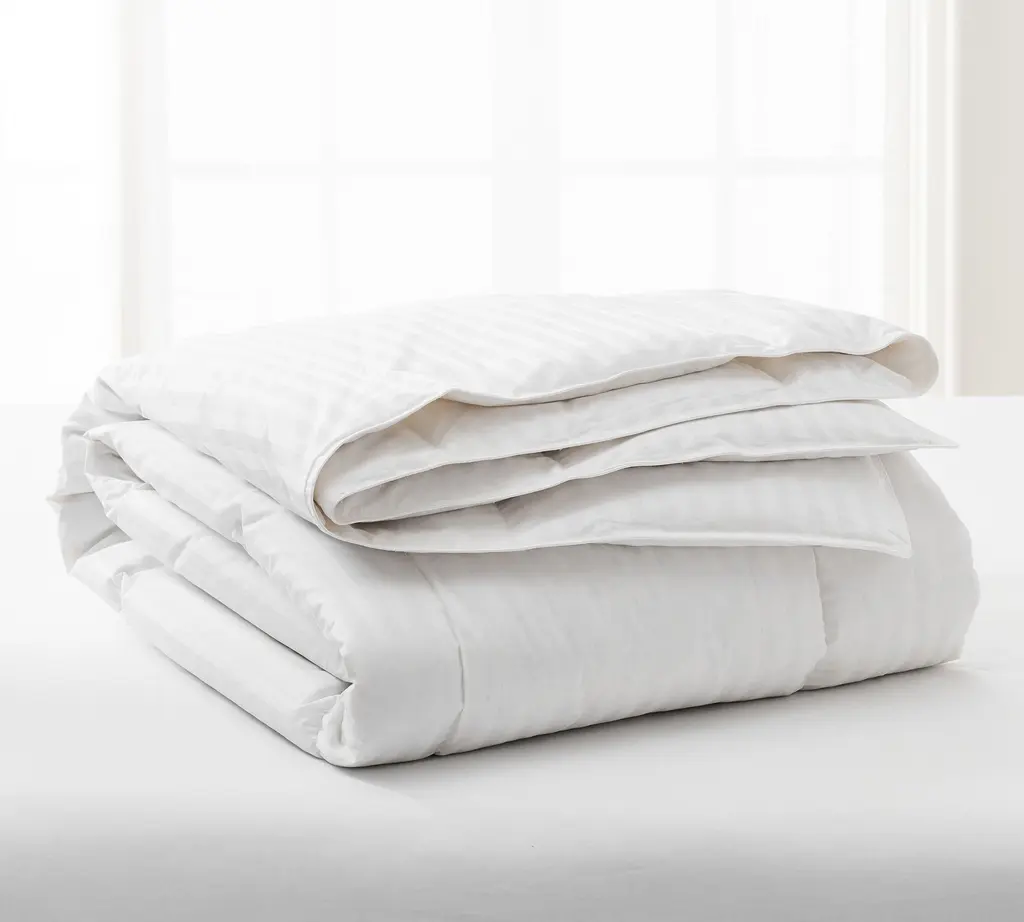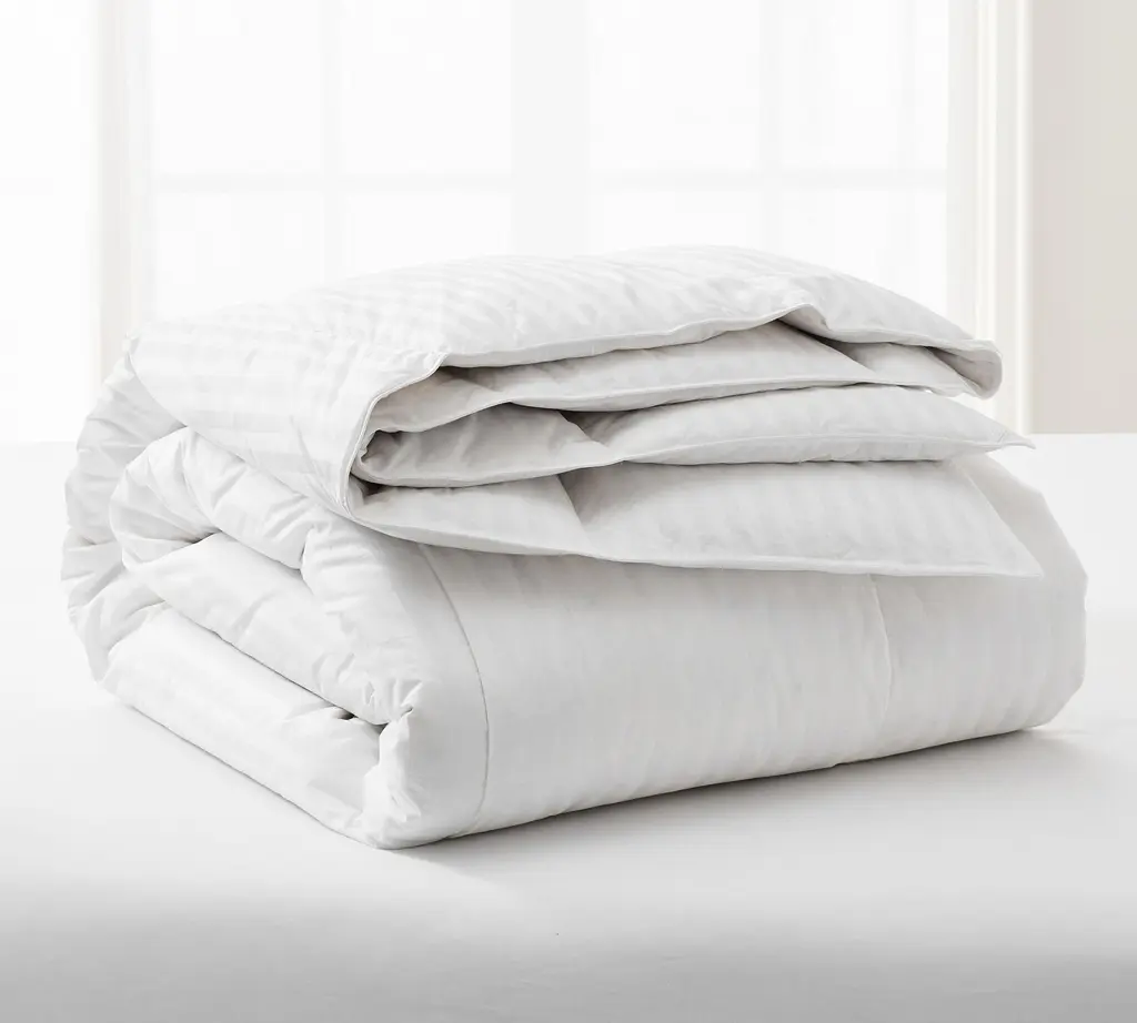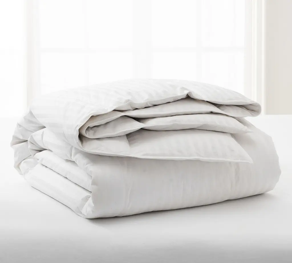 Rest in luxurious comfort with the finest 700-fill-power European white goose down comforter that’s encased in damask-stripe cotton for a regal look. With exceptional loft and warmth, the larger goose-down clusters offer superb softness and higher thermoregulation for a superior sleep experience.