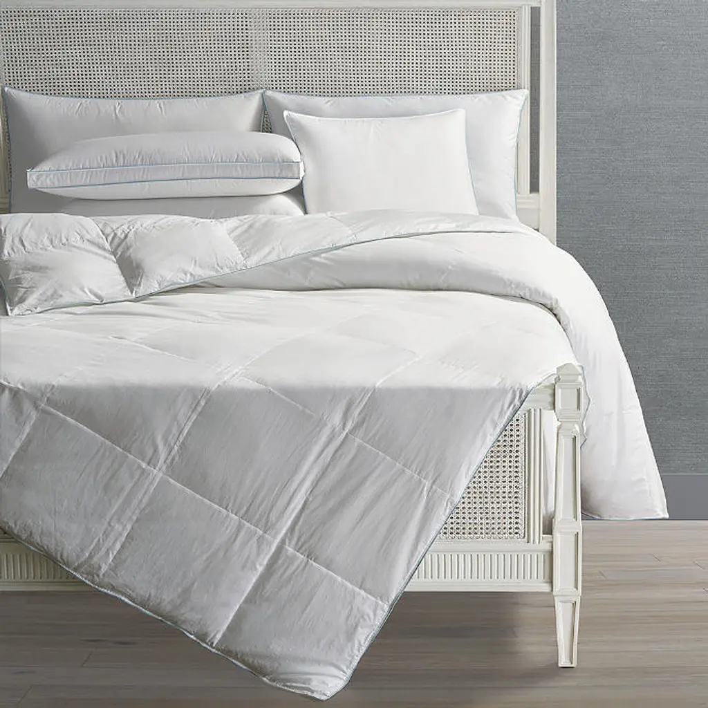 The ultimate in luxury, this 3-inch thick down-topped featherbed is designed to be used on your existing mattress for an extra layer of comfort that will last for years. It is overfilled with premium feathers and topped with white down to provide cushioned support. 100% cotton shell230 thread count cotton cambric fabric on top195 thread count cotton twill fabric on bottom White down filled top and feather filled bottom650 fill powerResponsibly sourced down Multi-cycle cleaned to eliminate dust and debris to reduce allergens Top has baffle box construction to keep the fill evenly distributed Feather-filled bottom has channeled construction for support4" channel with 3" gusseted design Made in the USA of imported materialsAt Frontgate, our primary focus is quality. We guarantee that every product we sell will stand up to the supreme test – our customers' satisfaction. To learn more about our policies, visit our Shipping & Processing, Returns & Exchanges and Warranty & Price Guarantee pages.