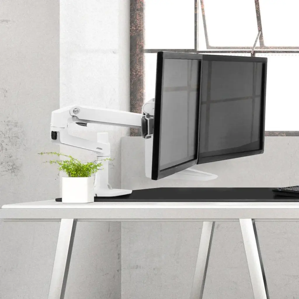 This fully adjustable dual-monitor arm allows you to position two monitors right where you need them to help reduce neck pain and fatigue.