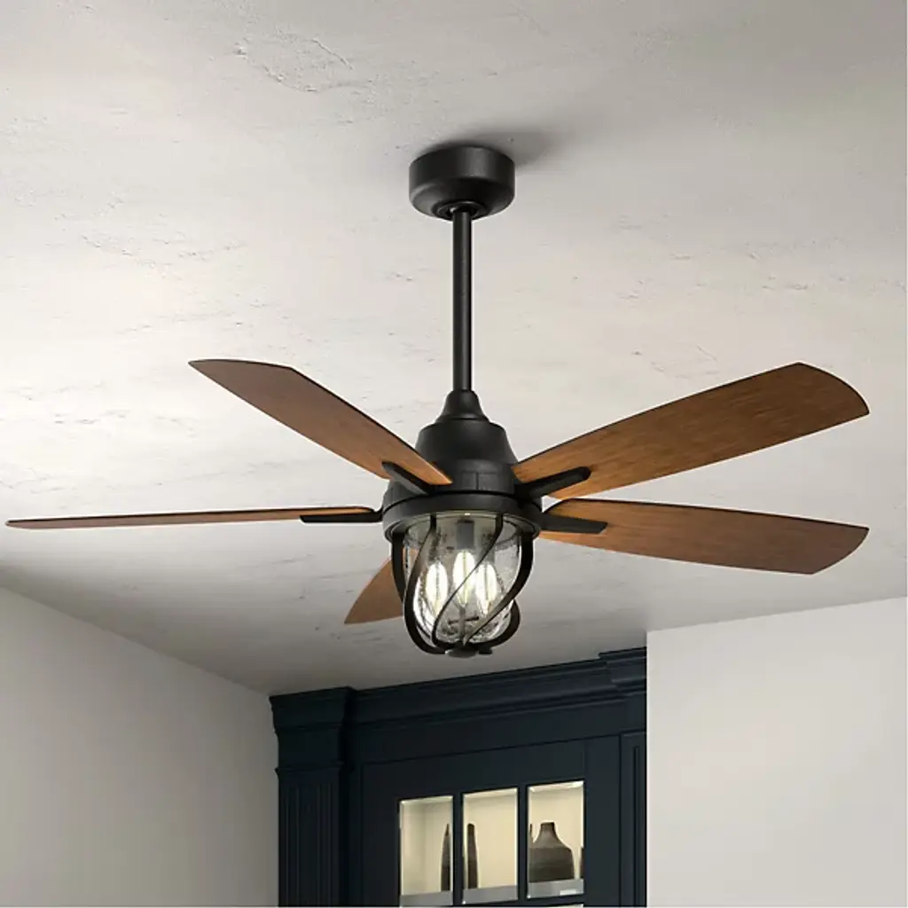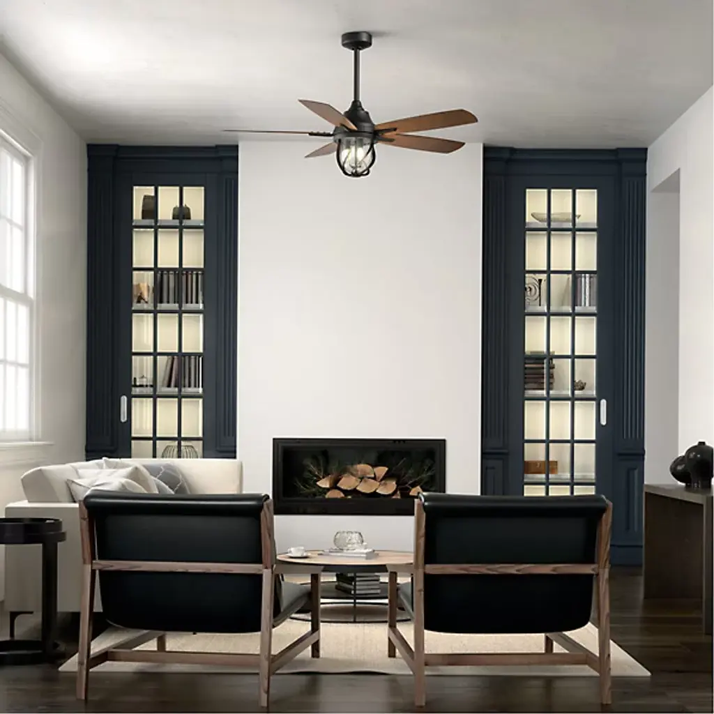 An elegant refresher in the patio, the Lydra LED Cieling Fan from Kichler pairs a cool, coastal style with a robust construction designed to last. The fan sets itself apart with a clear sense of personality through elegant decoration. Wavy metal contours mesmerize as they protect the texture-rich surface of the clear seeded glass shade. This combination of materials gives the outpouring LED light a rich, easy on the eyes feel. Up above, an efficient engine housing gives the piece multi-speed, reversible functionality. The handsome modern blades cut across the air, delivering an uplifting breeze. An included remote control puts the fan’s deep functional in your hands for ease of use.