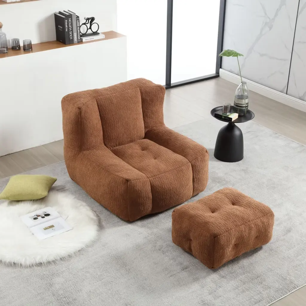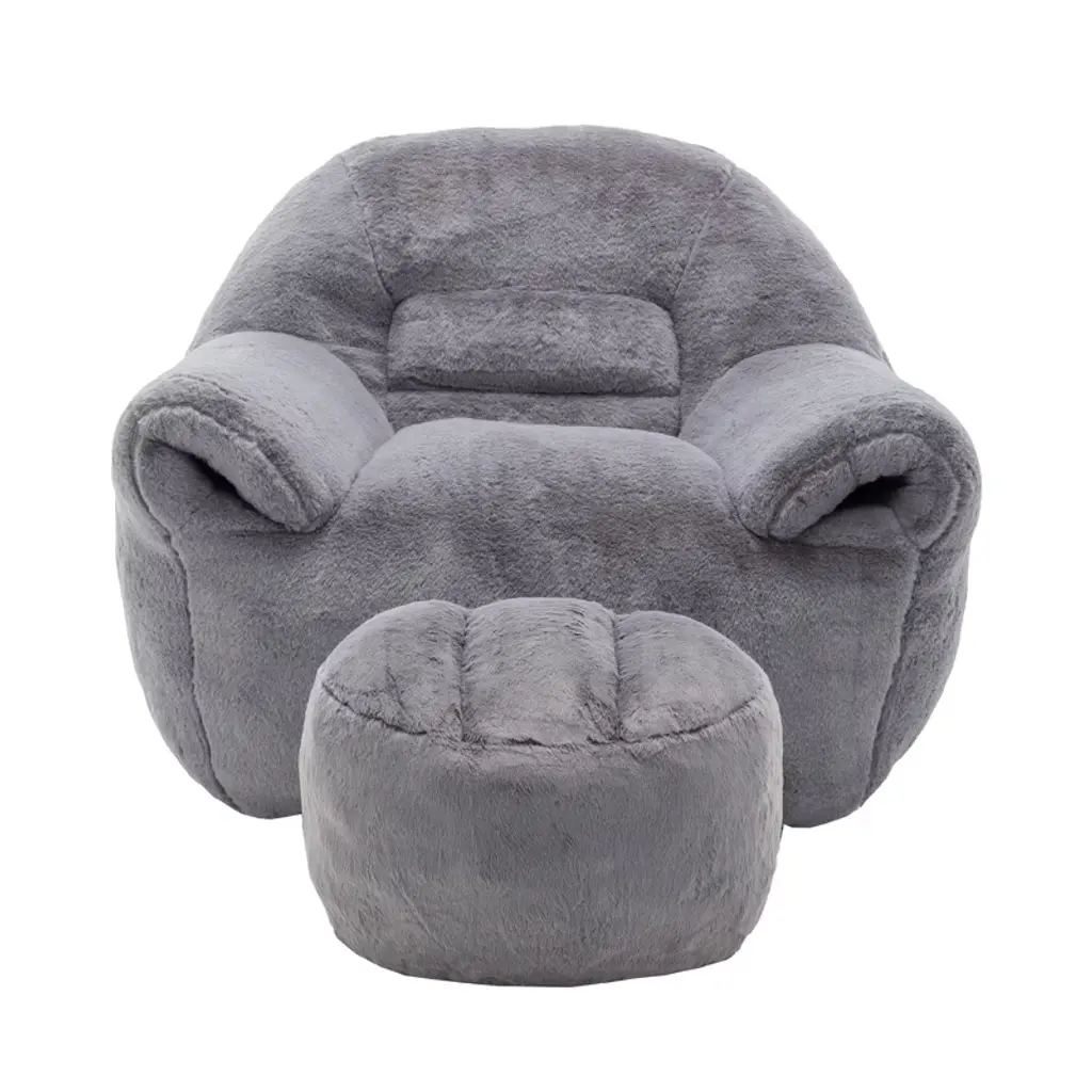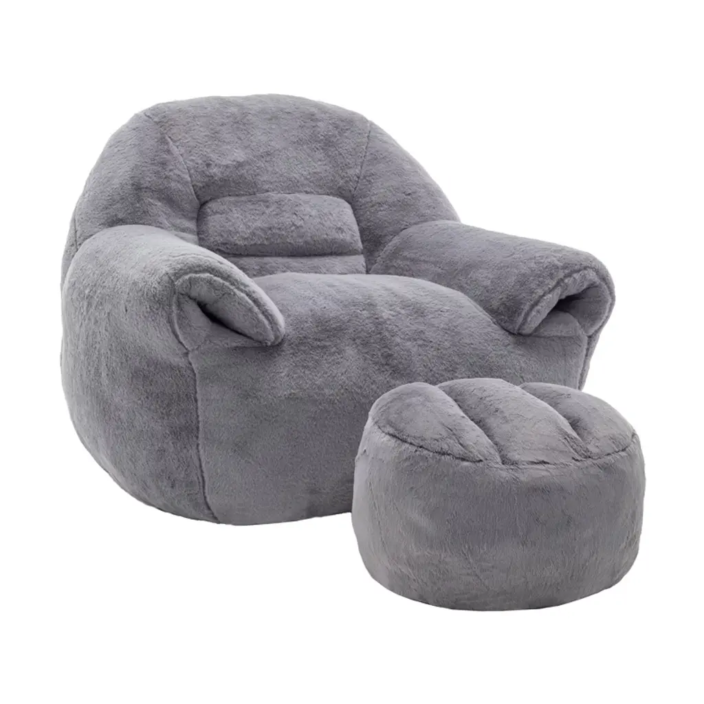 Lyngins Faux Fur Bean Bag Chairs For Kids And Adults,lazy Chairs With Back Support And Ottoman For Living Room,dark Gray