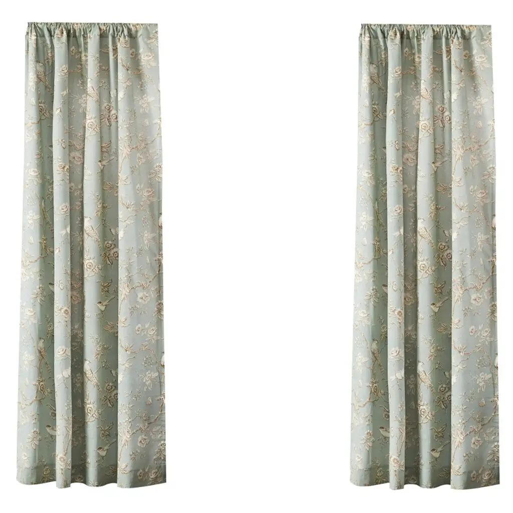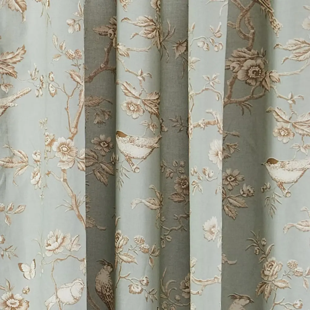 Lyon Teal Toile Lined Curtain Panel With Rod Pocket - 2Pk - Levtex Home