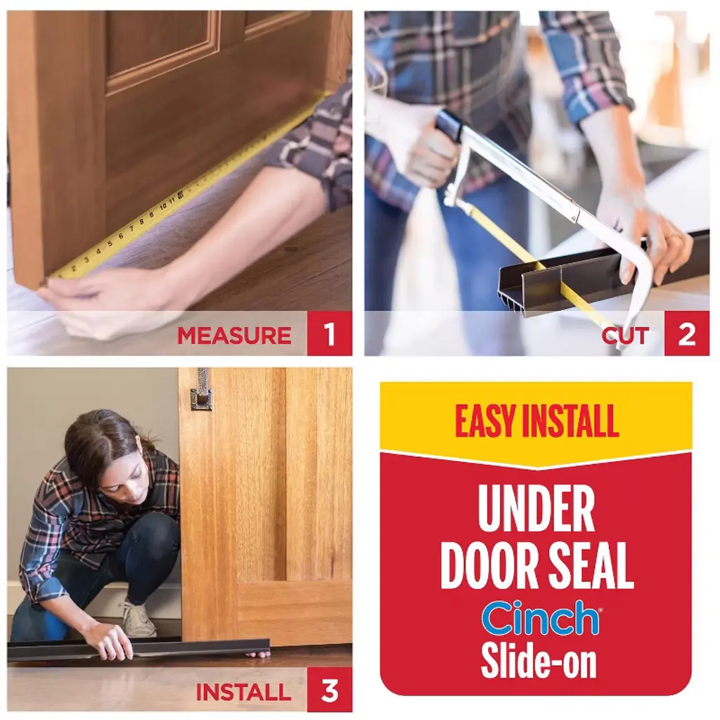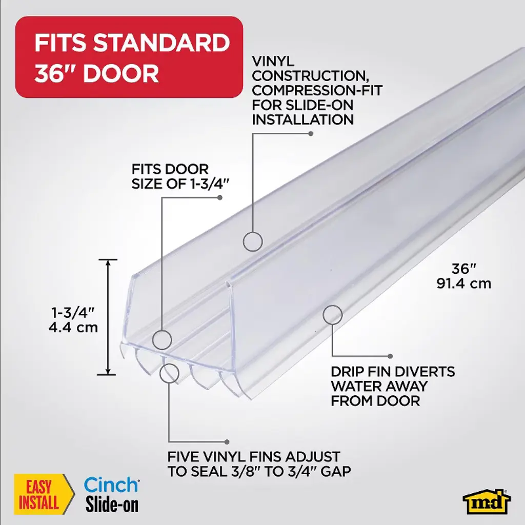 The M-D Vinyl U-Shape CINCH Slide-On Under Door Seal features vinyl fins for protection from drafts, moisture, dust and insects. Save on energy by sealing the bottom of the door and keeping the heat or air conditioning from escaping. CINCH products are ea