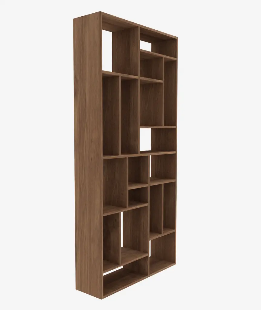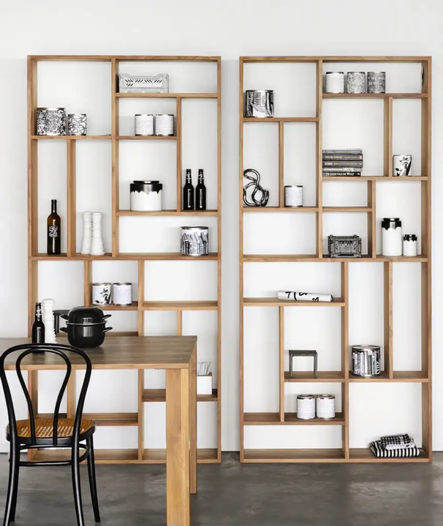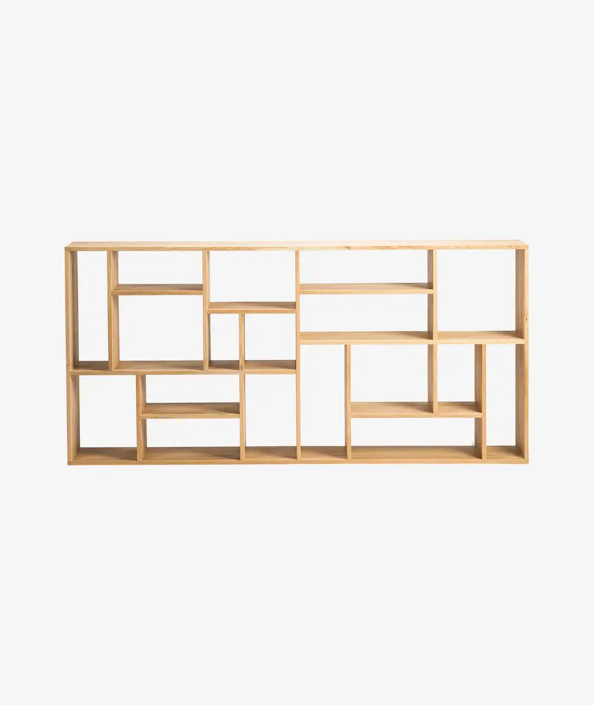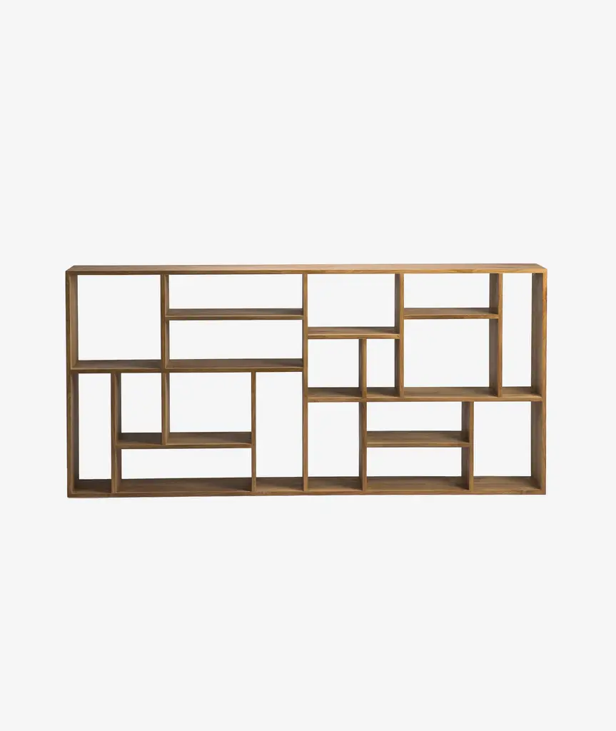 The Mondrian-inspired M rack is based on the Dutch painters famous grid of vertical and horizontal lines. Made of solid Oak or Teak, this rack is available in two sizes. Unit can be used horizontally or vertically, catering to unique spacial needs.
