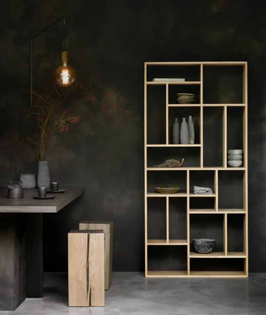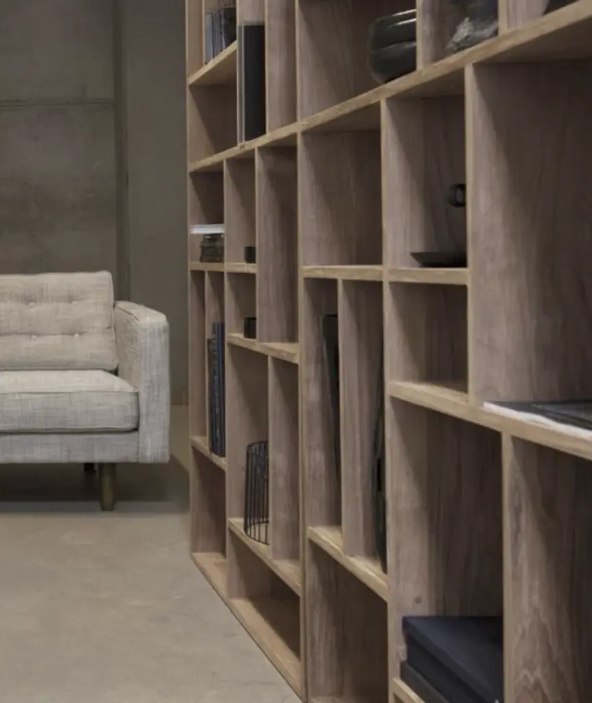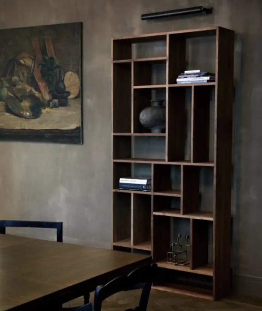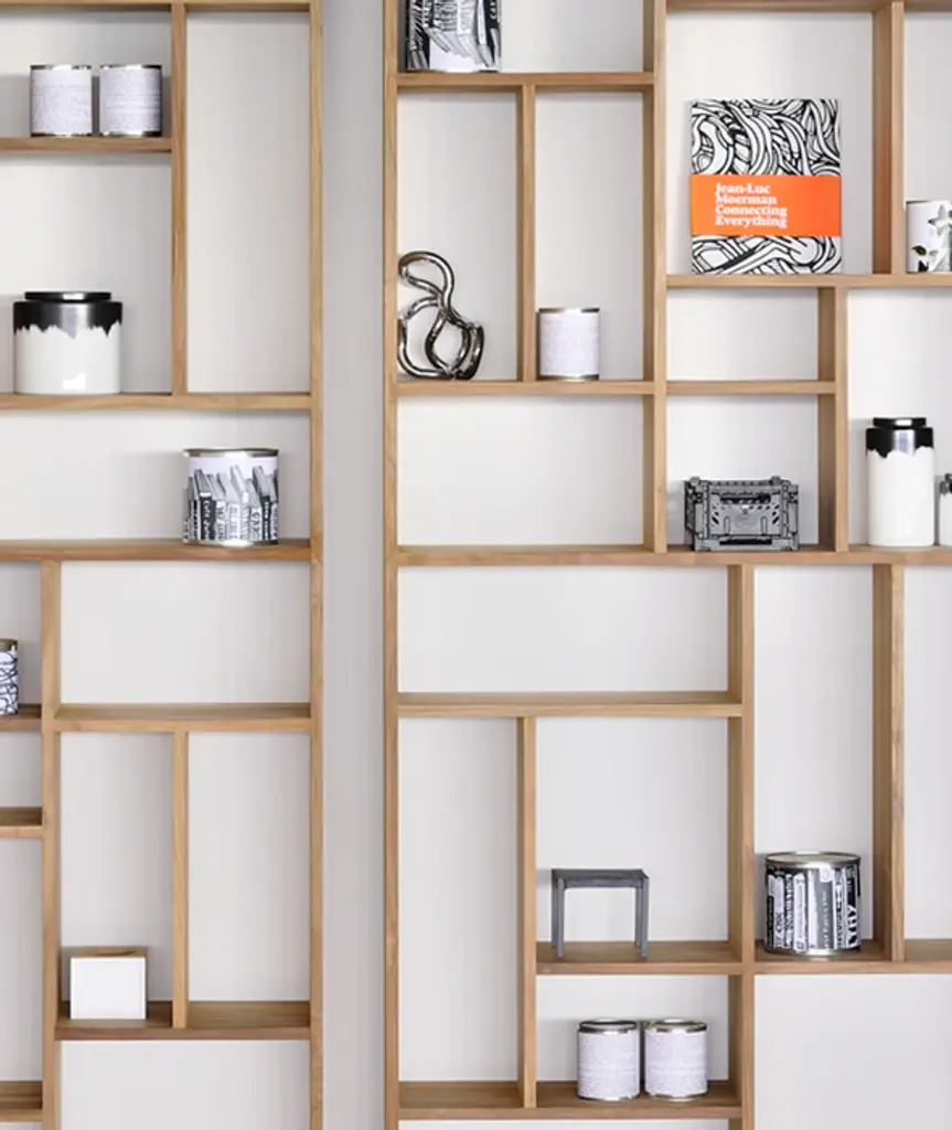 The Mondrian-inspired M rack is based on the Dutch painters famous grid of vertical and horizontal lines. Made of solid Oak or Teak, this rack is available in two sizes. Unit can be used horizontally or vertically, catering to unique spacial needs.