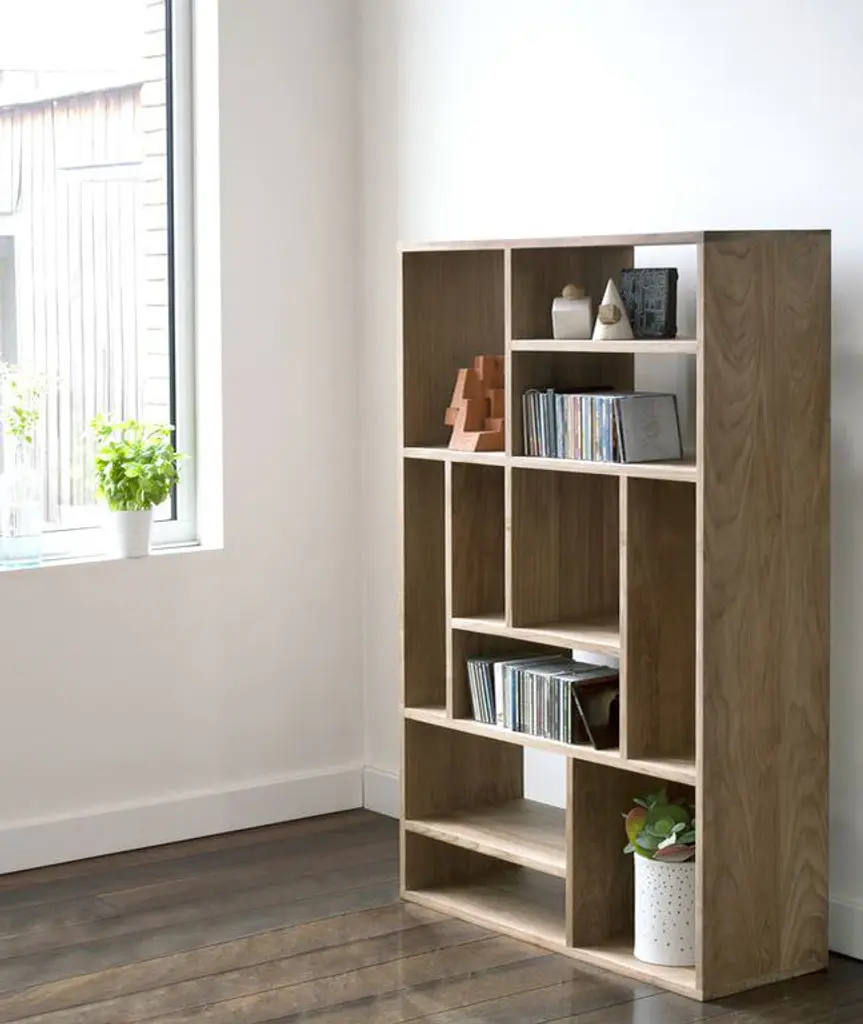 The Mondrian-inspired M rack is based on the Dutch painters famous grid of vertical and horizontal lines. Made of solid Oak, this rack is available in two sizes. Unit can be used horizontally or vertically, catering to unique spacial needs.