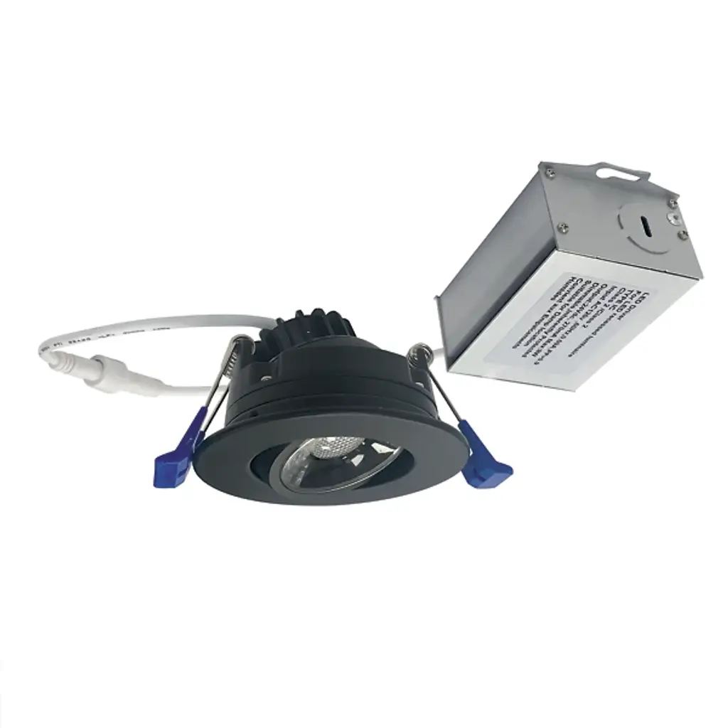 The M2 2-Inch LED Mini Recessed Gimbal from Nora Lighting helps one achieve an intricate lighting scenario with a compact construction sporting adjustability options. The piece features an airtight and no-housing required design. Great in multiples, the luminaire powers up with linkable, quick-disconnect cables. Its lamp head features an LED array and a light-focusing lens. Its gimbal mechanics allow it to tilt 15 degrees for a precise, comfortable light stream.