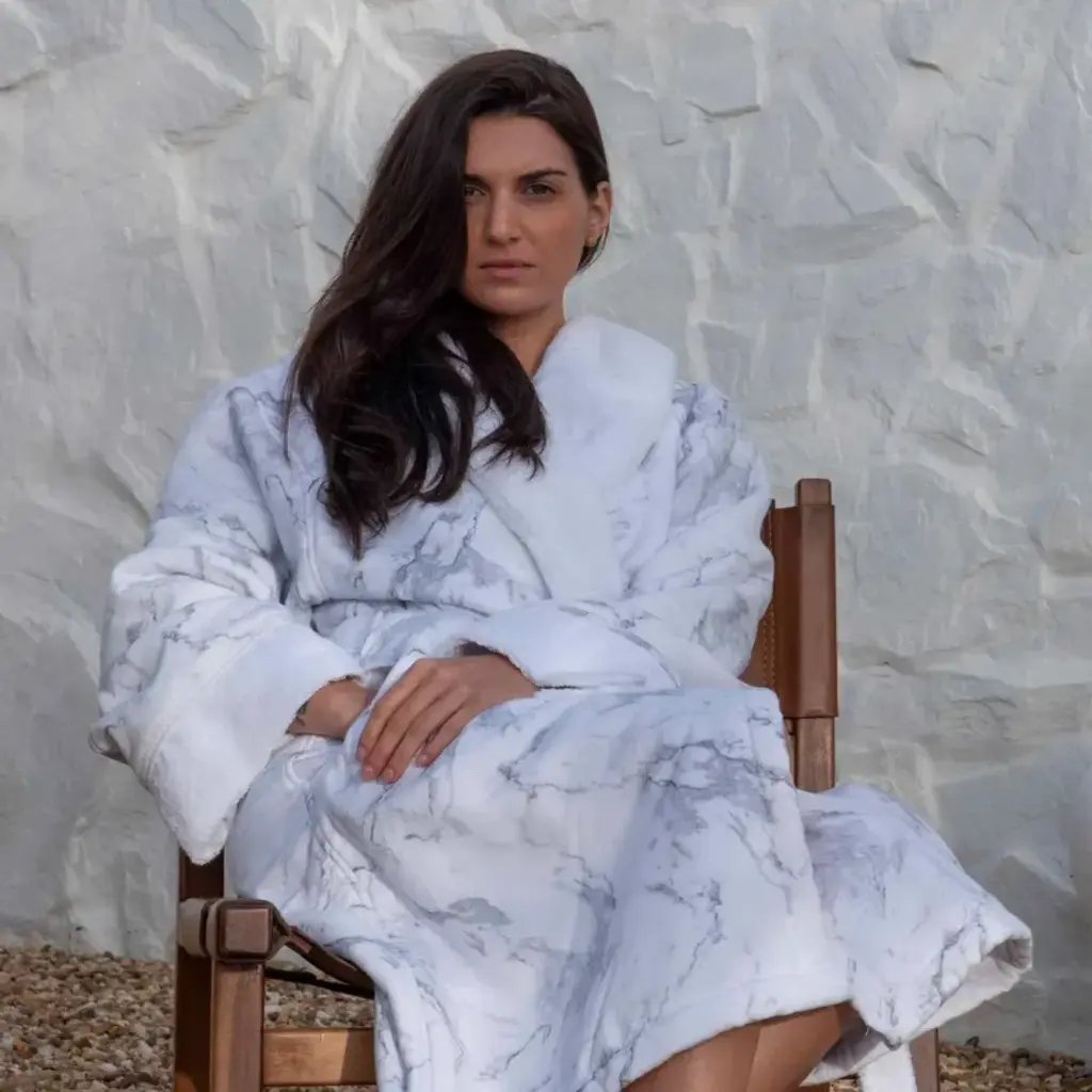 Super soft, absorbent and comfortable bath robe with a plush and luxurious feel. Indulgently thick, this robe is sewn to perfection in Portugal, crafted from the finest cotton. Double-sided: one side terry and the other side fabric. Pre-washed and pre-shrunk for greater absorbency and softness.