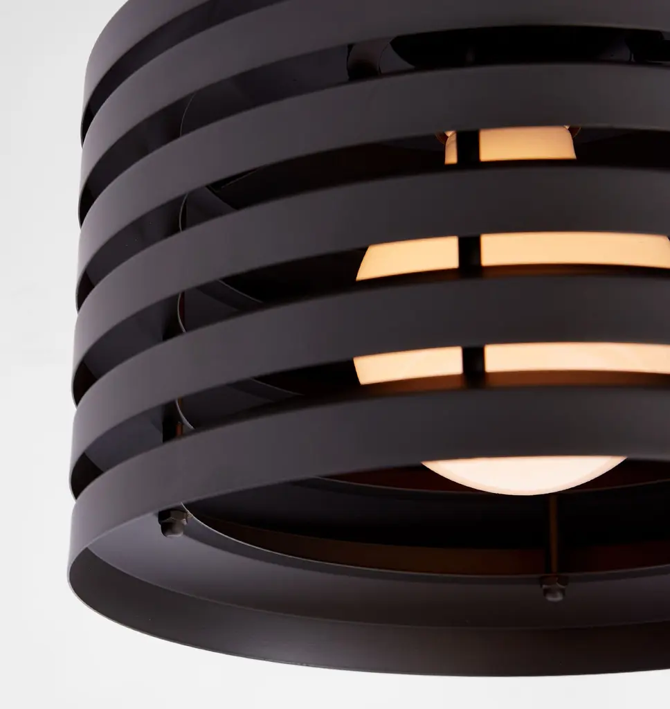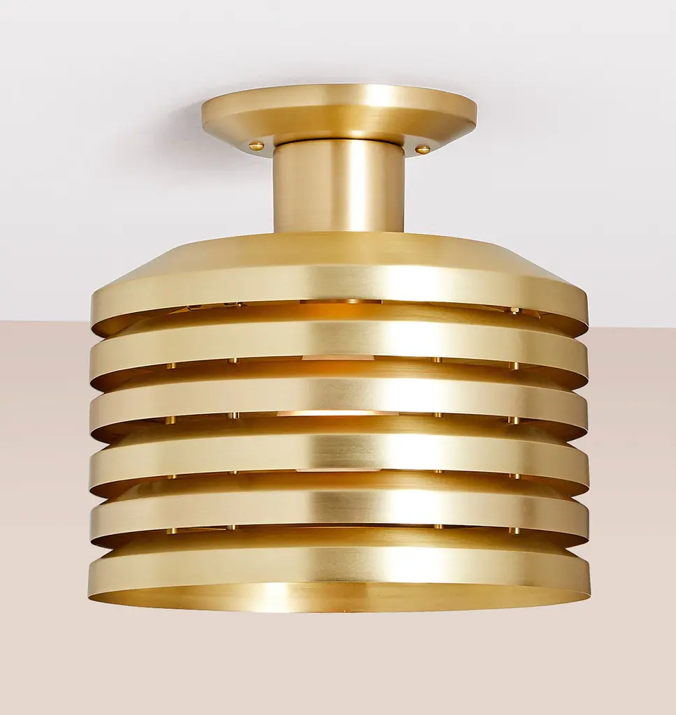 Steeped in the modern simplicity of 1950s Scandinavian design, the Macadam Pendant embodies a timeless combination of form and function. Angled louvers in solid brass add transparency to the fixture, revealing the light within and casting a unique pattern below.