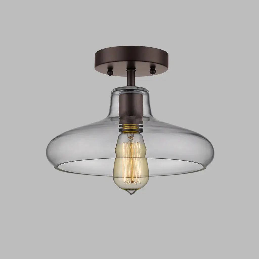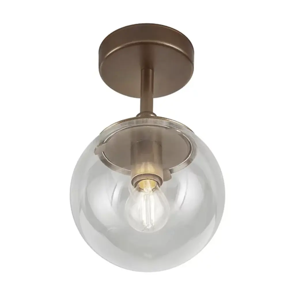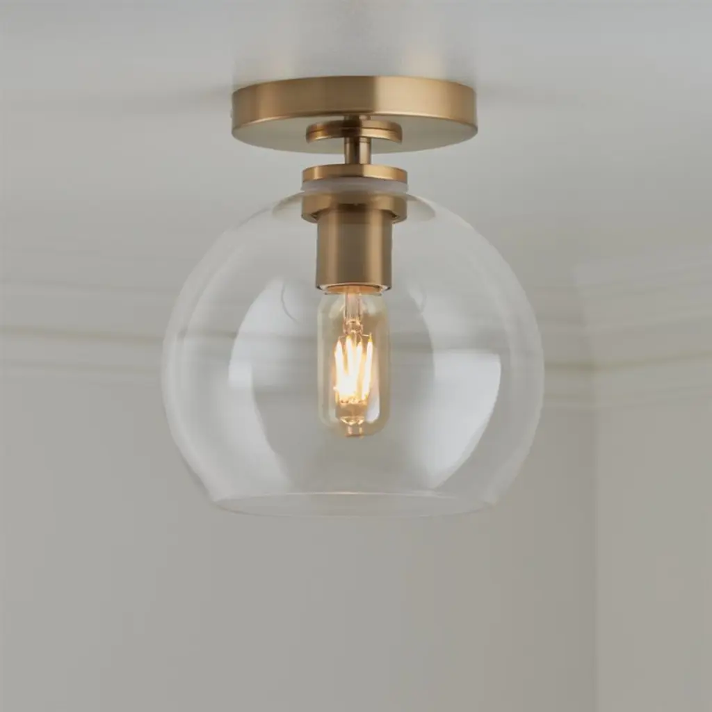A study in positive and negative space, density and openness, strength and fragility, our Machinist Flushmount by Jonathan Browning is a yin and yang exploration. Crafted of solid metal, the geometric yoke reveals its industrial inspiration. In contrast, the clear glass surround is barely there, echoing the form of a shade. An Edison bulb housed within reveals arresting filaments of light. SHOP THE ENTIRE COLLECTION