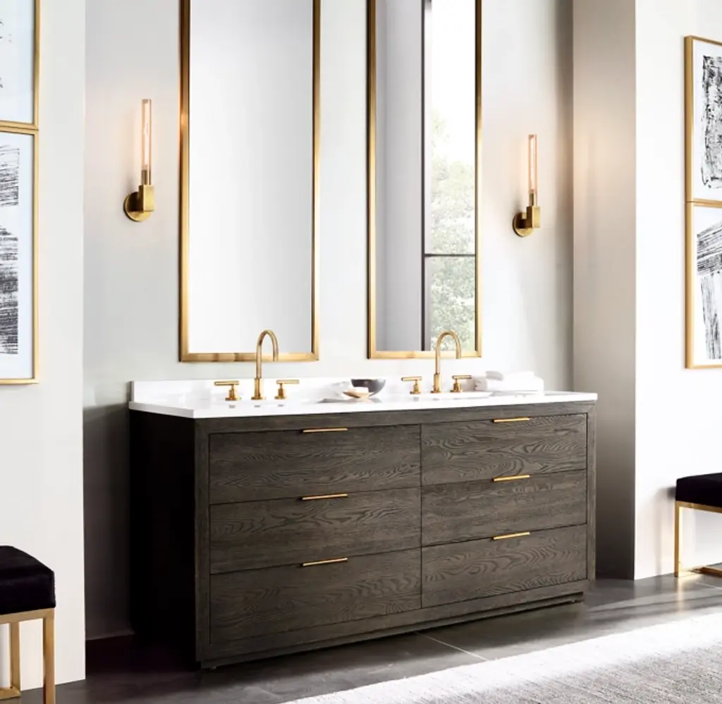 Designed by the Van Thiels, our collection recalls 1970s postmodernism with bold proportions and clean, mitered lines. Featuring a streamlined silhouette punctuated by sleek metal hardware, it conveys the refined minimalism of the era.SHOP THE ENTIRE COLLECTION ▸